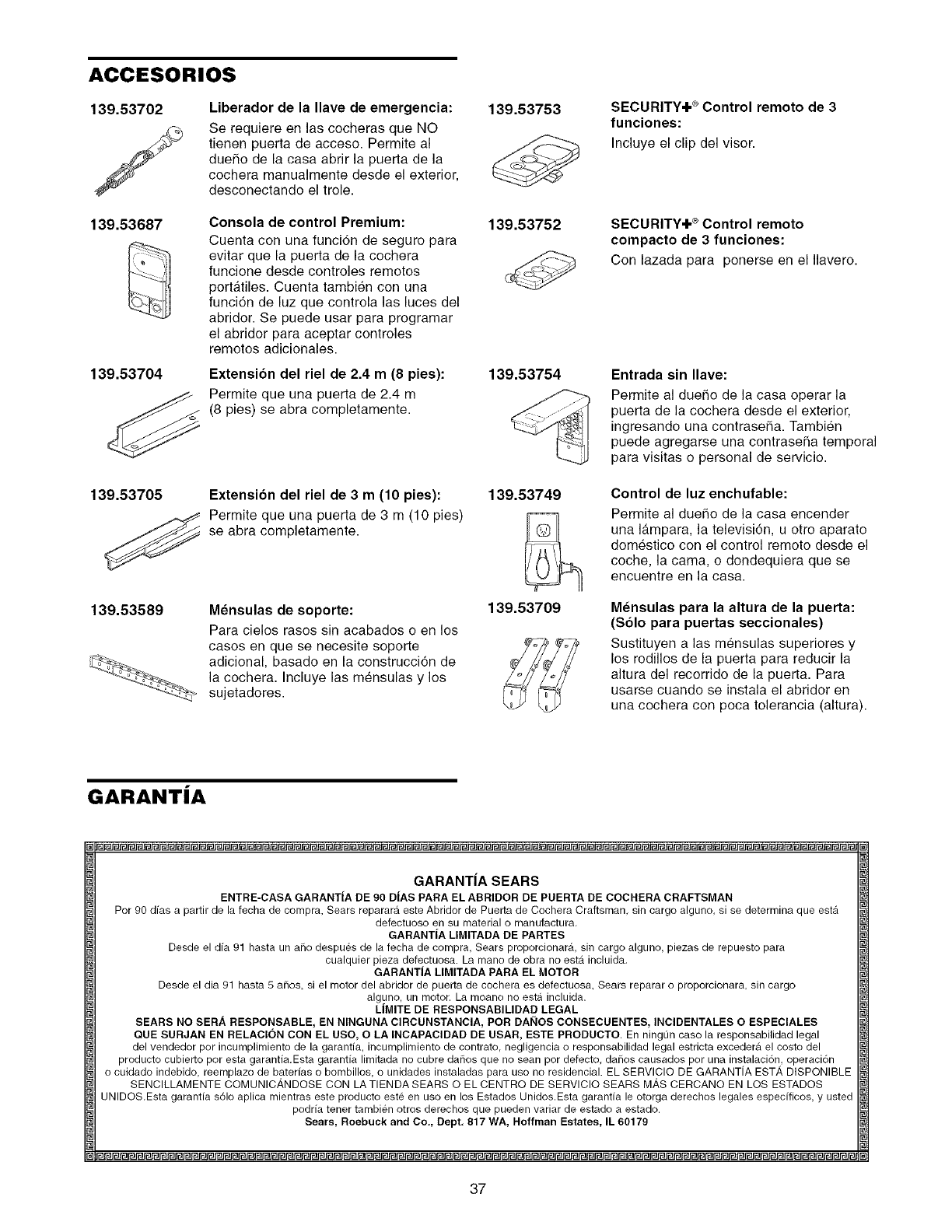 ENTRE-CASA GARANTiA DE 90 DiAS PARA EL ABRIDOR DE PUERTA DE COCHERA CRAFTSMAN