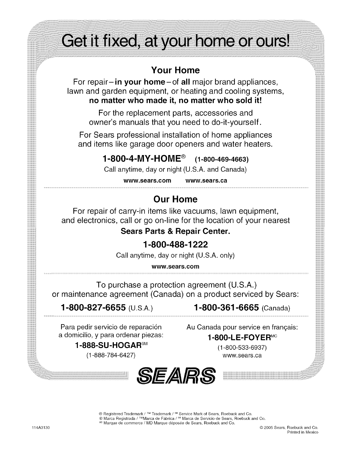 ® Registered Trademark /TMTrademark /sMService Mark of Sears, Roebuck and Co.