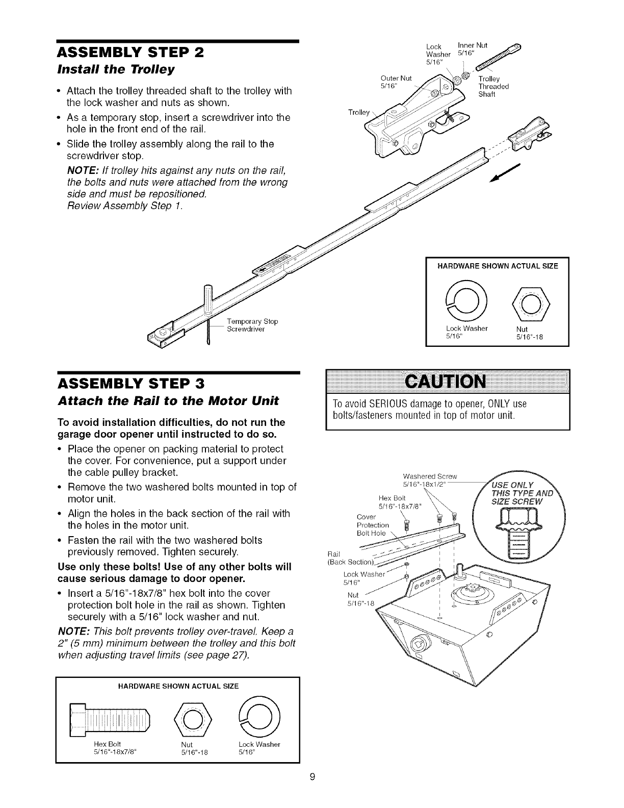 Attach the rail to the motor unit ................................... 9