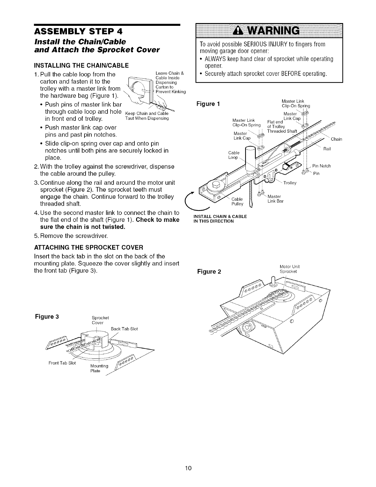 Install the chain/cable and the sprocket cover .......... 10