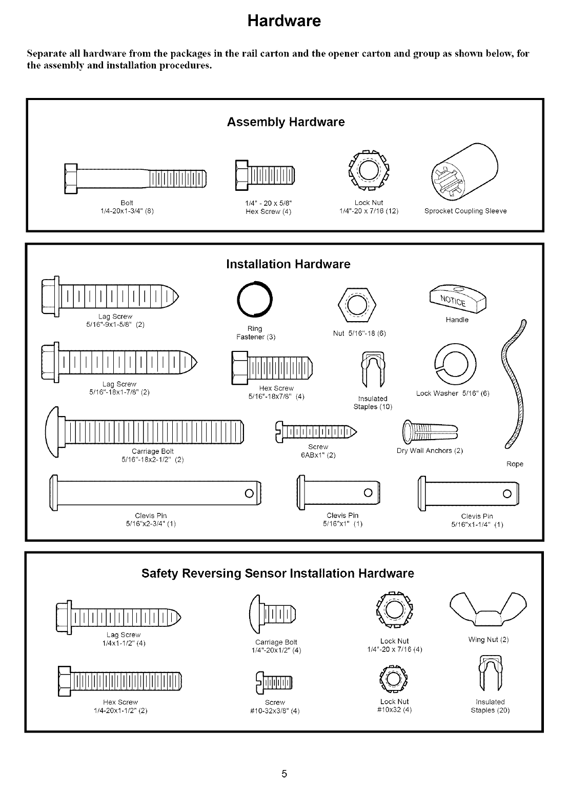 User Instruction Label for Garage Wall .................................................................................................................... 11, 21