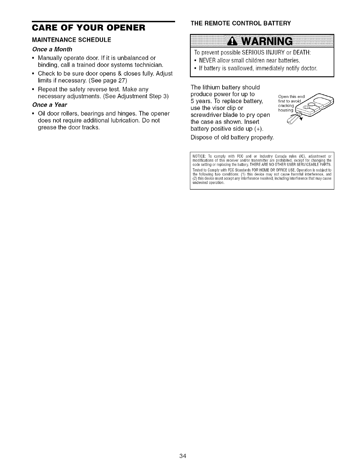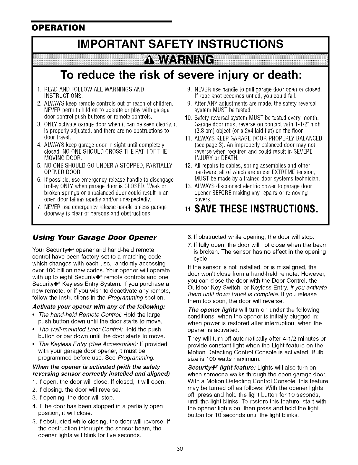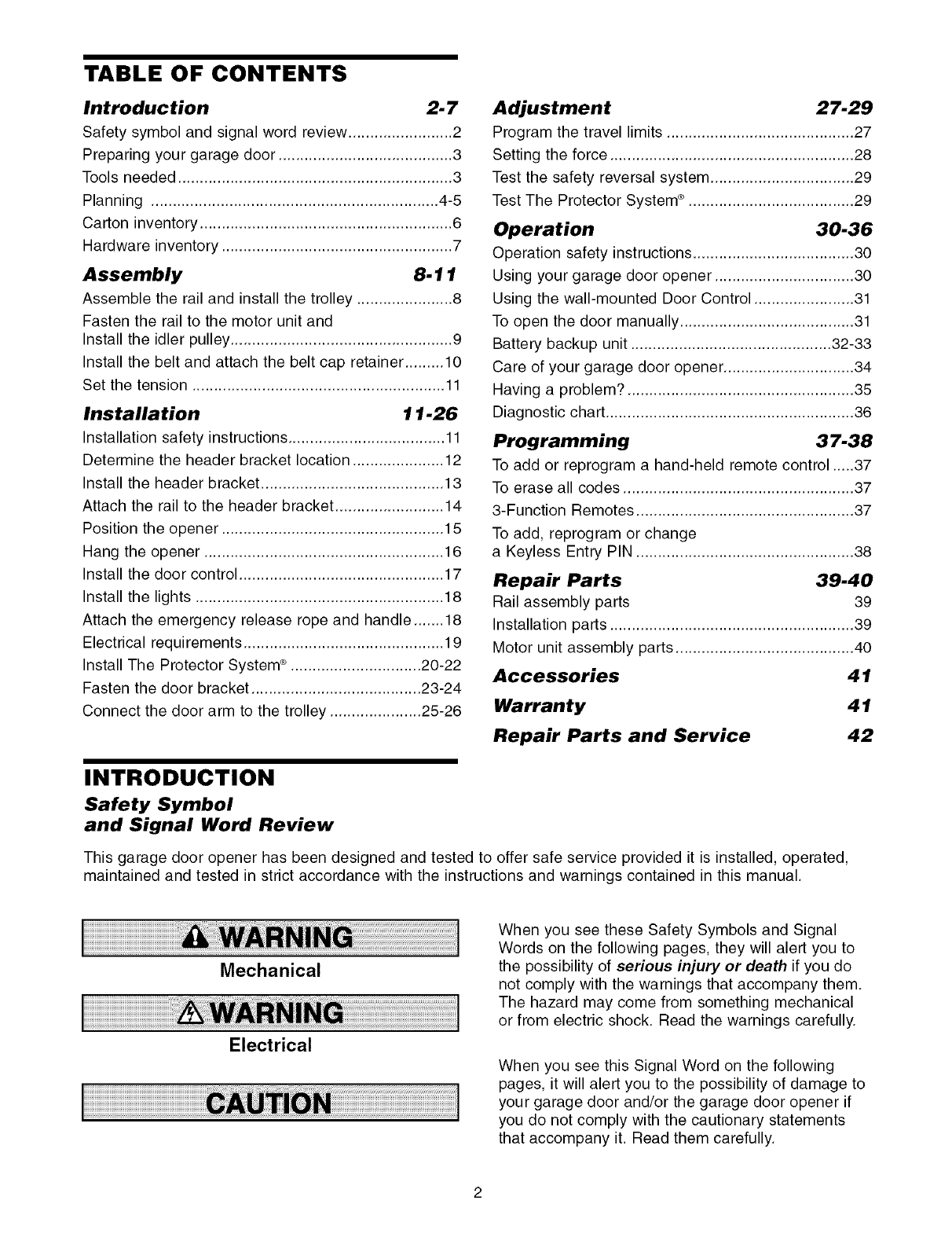 This garage door opener has been designed and tested to offer safe service provided it is installed, operated,
