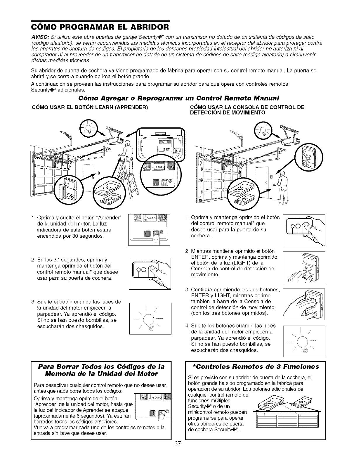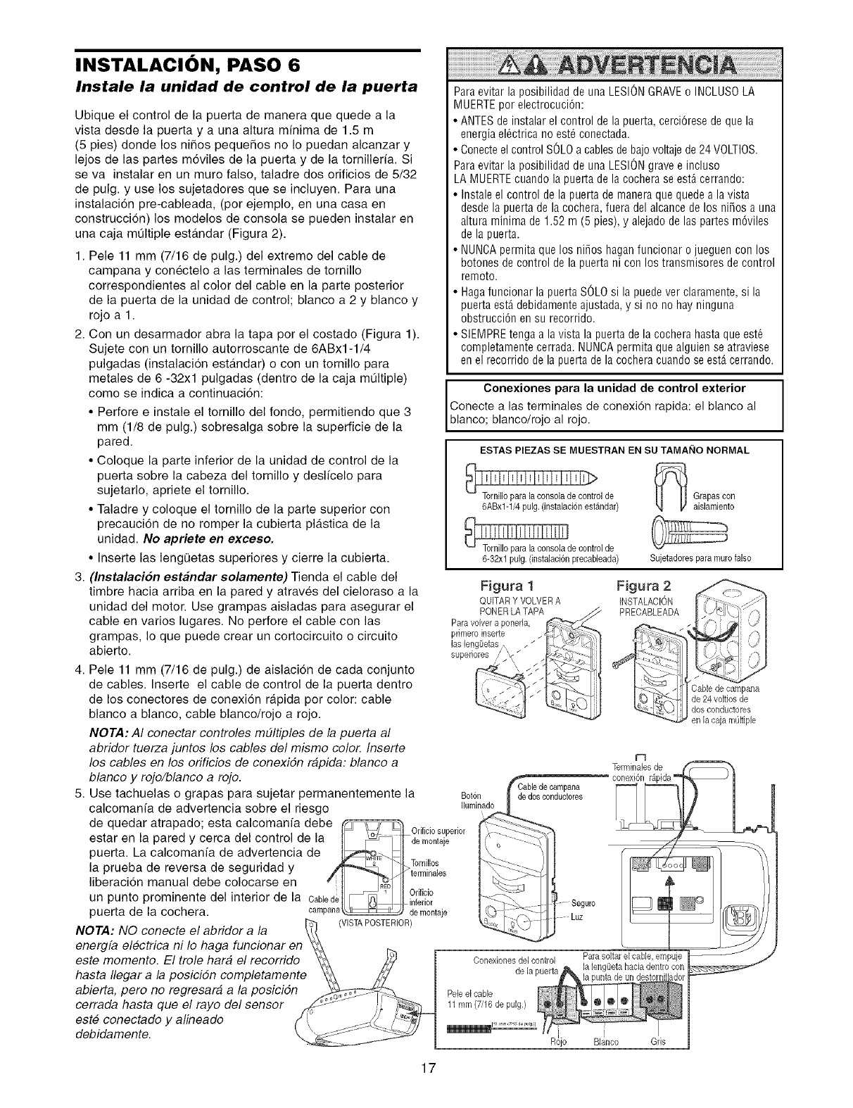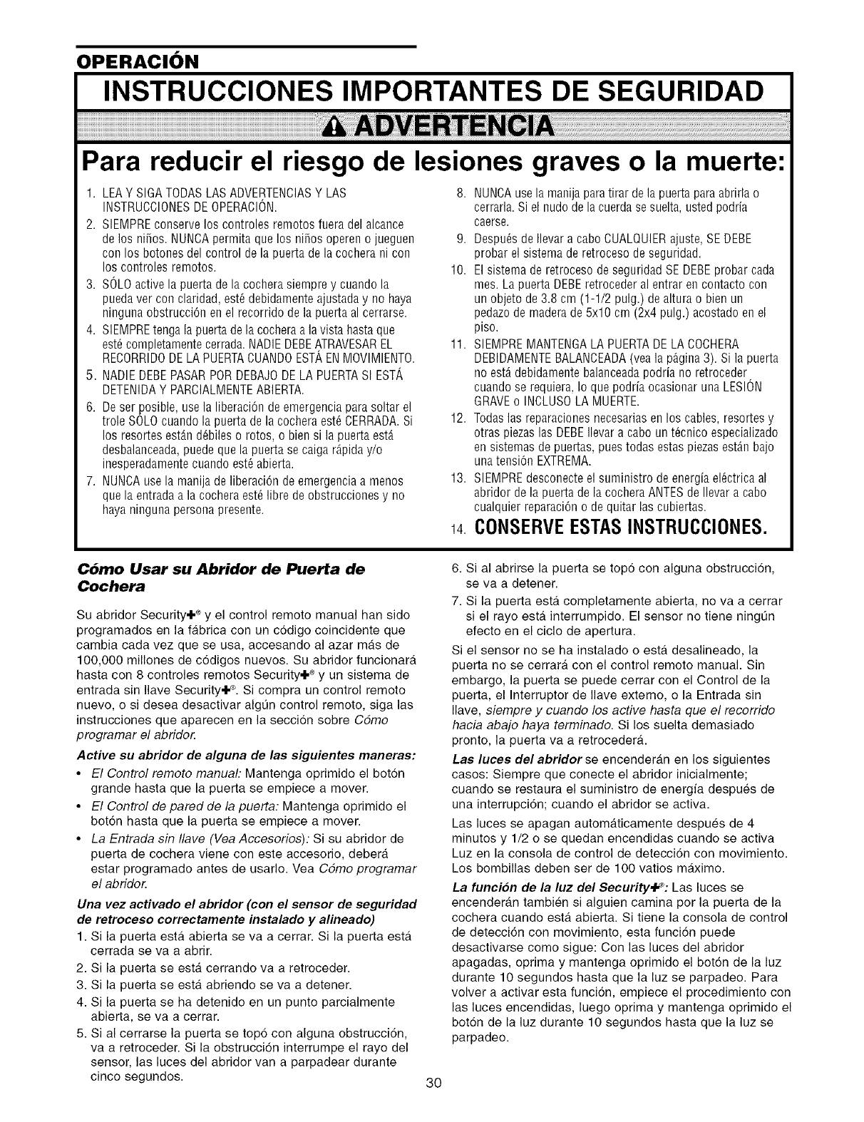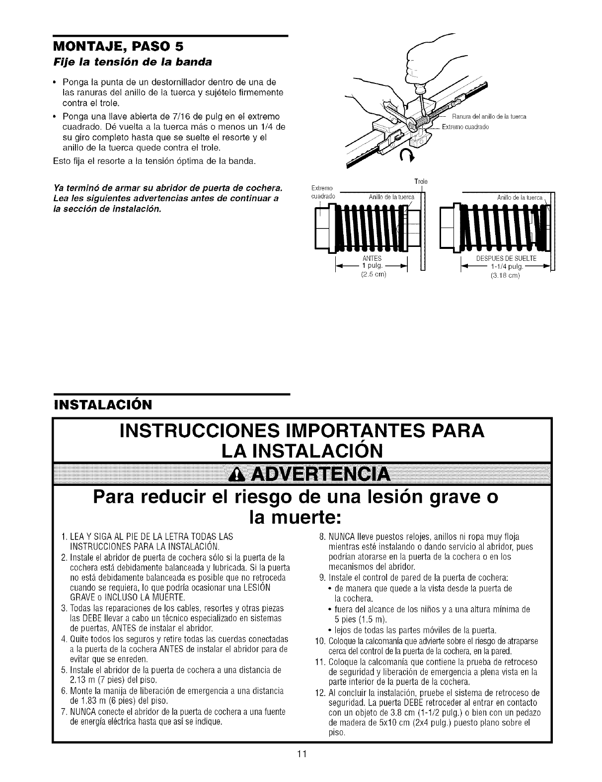a cabo la instalaci6n, ajuste y operaci6n de este abridor de puerta de cochera de acuerdo alas instrucciones contenidas en el instructivo del propietario.