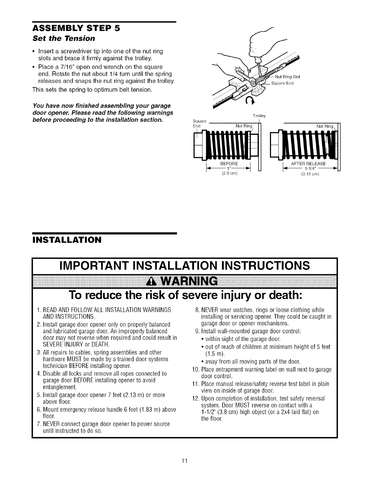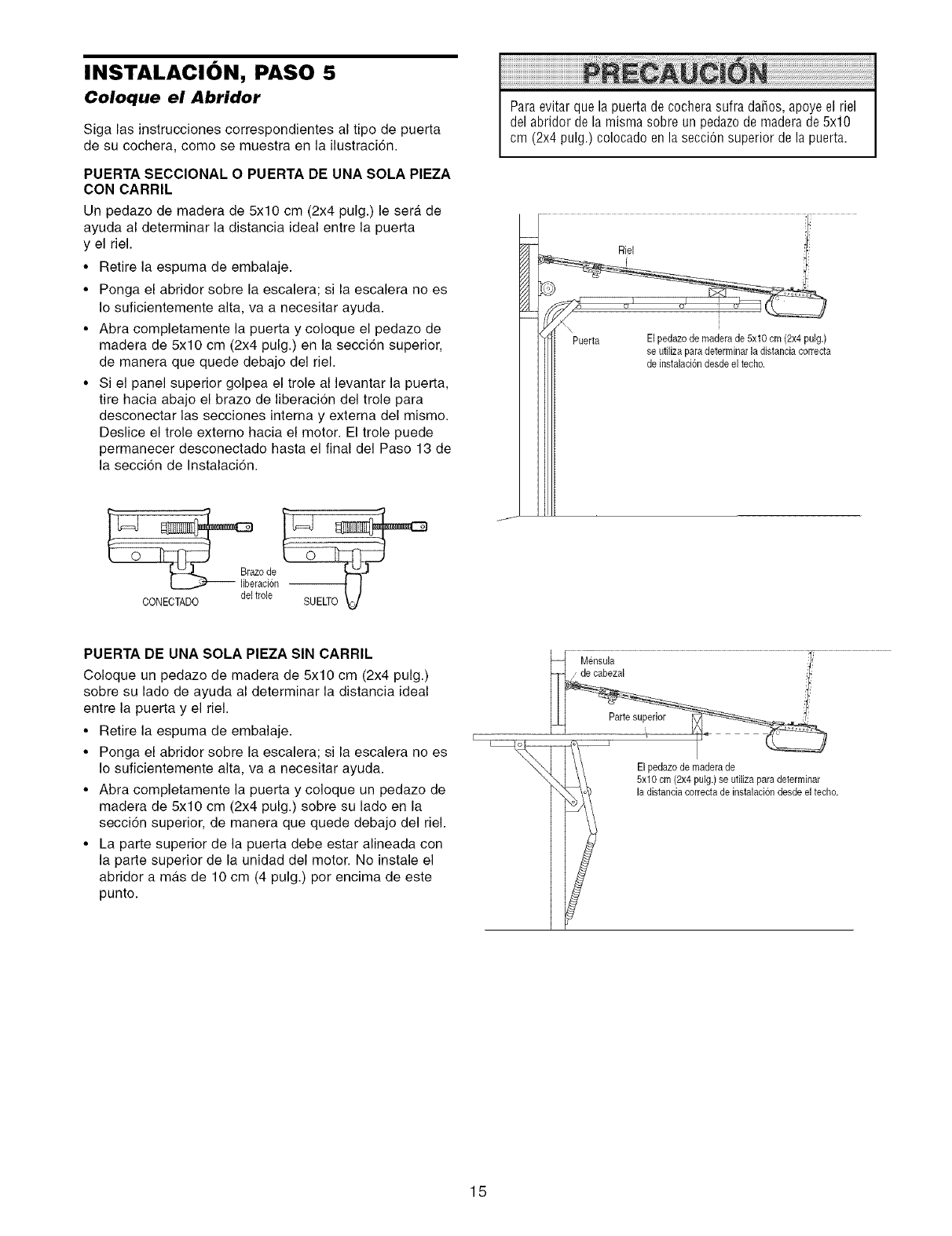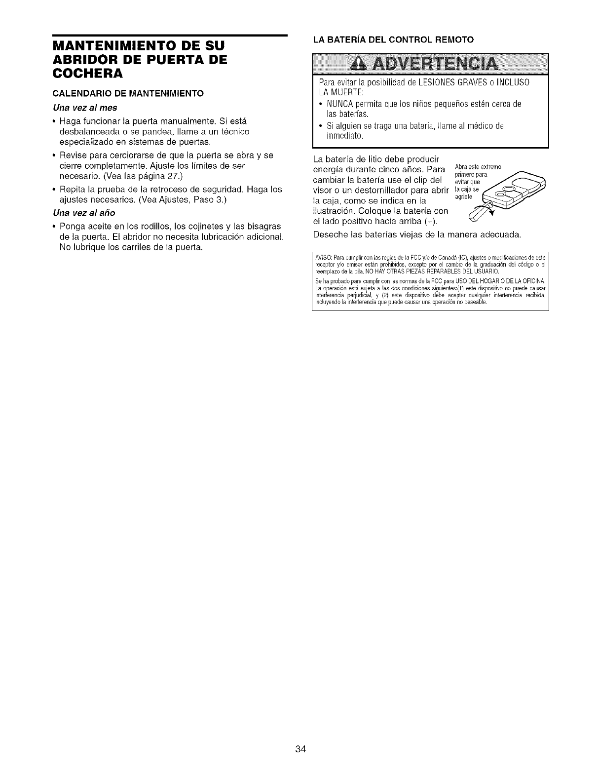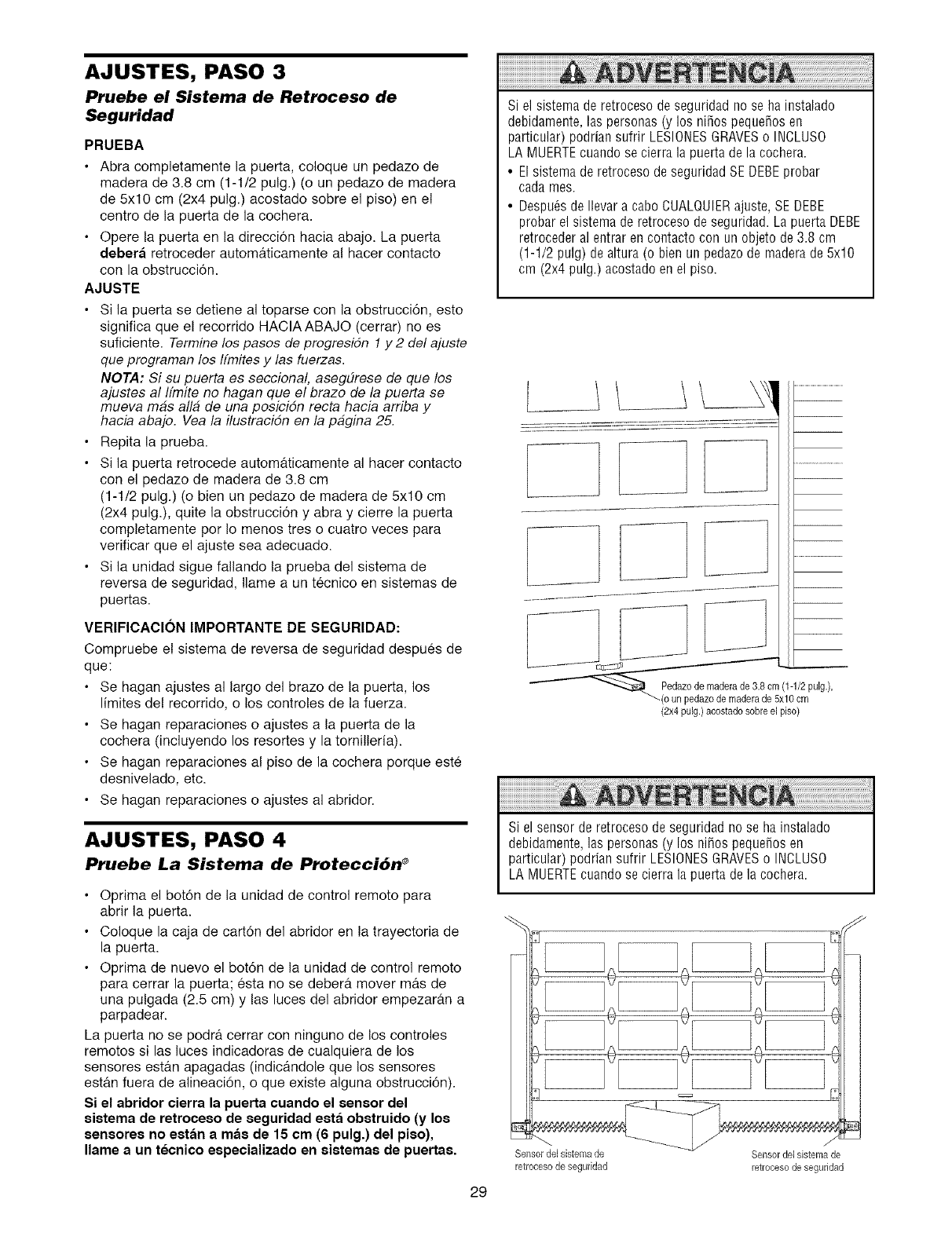 a cabo la instalaci6n, ajuste y operaci6n de este abridor de puerta de cochera de acuerdo alas instrucciones contenidas en el instructivo del propietario.