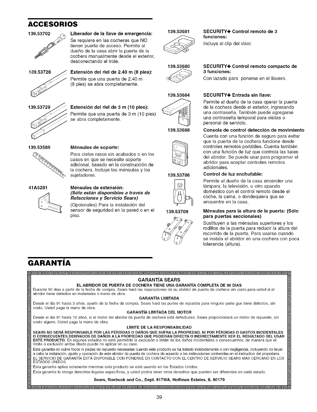 Durante 90 dias a partir de la fecha de cornpra, Sears har_t las reparaciones de su abridor de puerta de cochera sin costo para usted si el