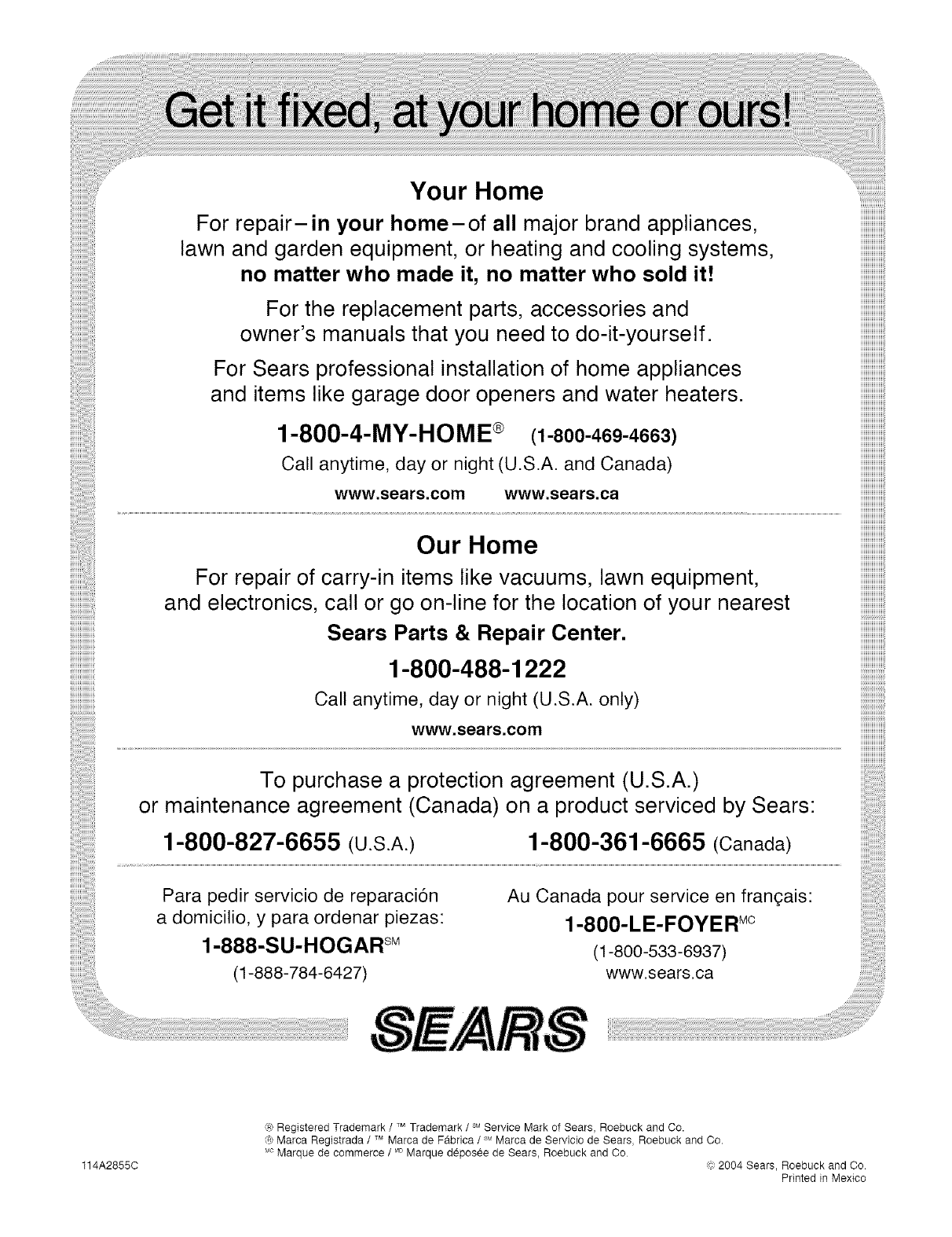 ,_cMarque de commerce /MDMarque deposee de Sears, Roebuck and Co '_; 2004 Sears, Roebuck and Co.