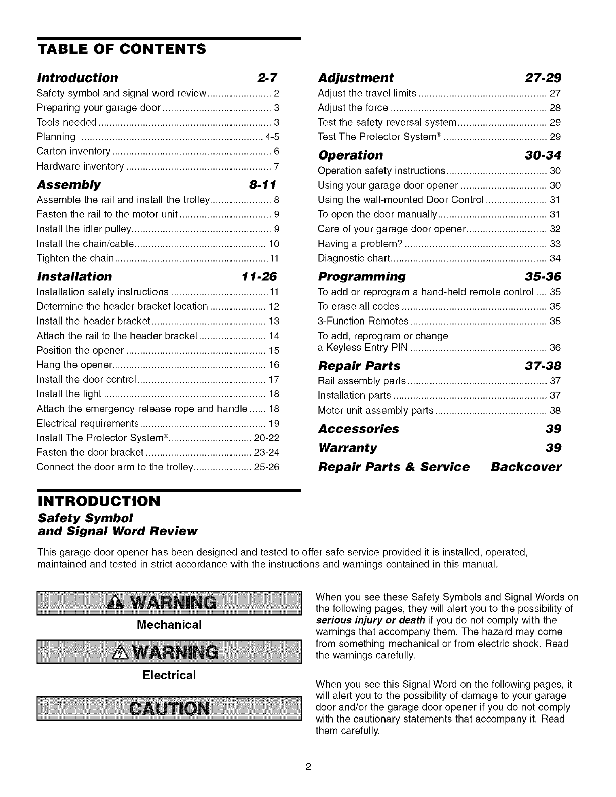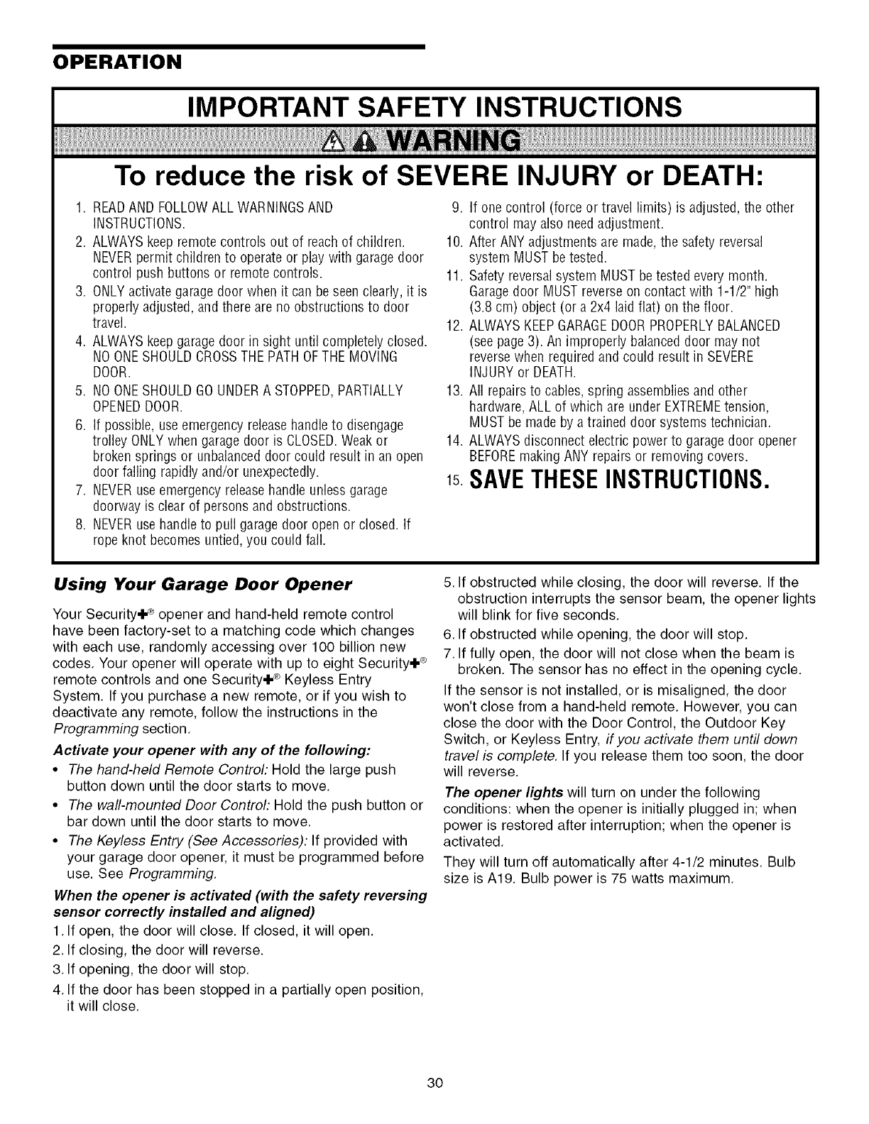 This garage door opener has been designed and tested to offer safe service provided it is installed, operated,