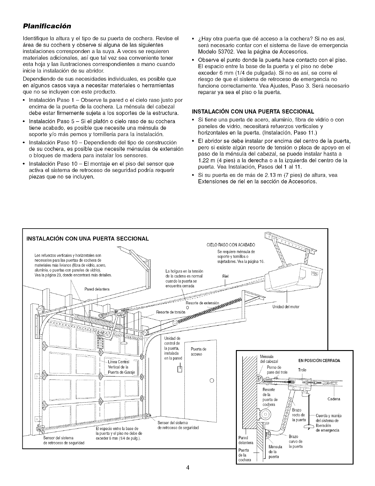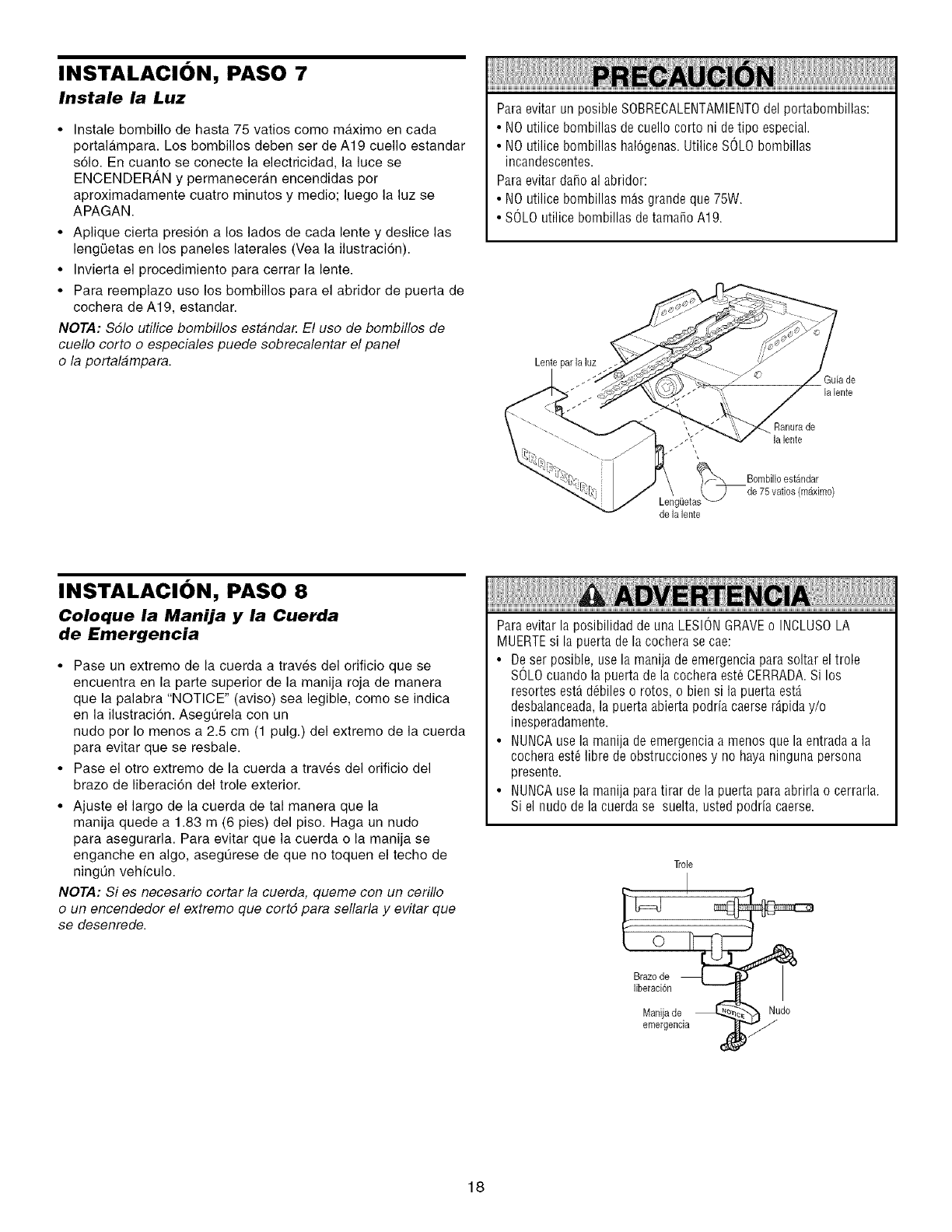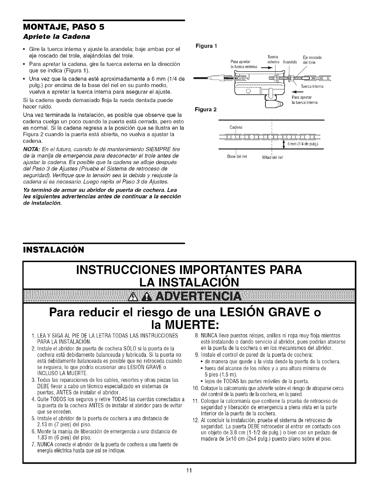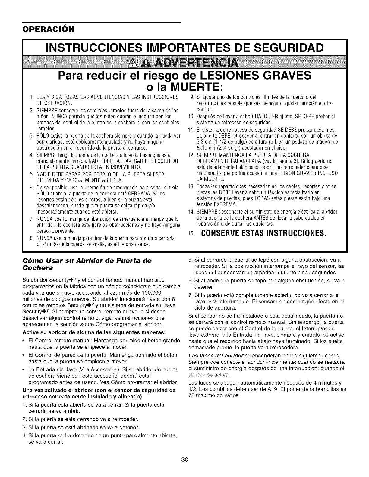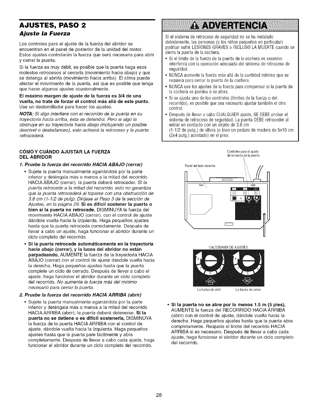 cabo la instalaci6n, ajuste y operaci6n de este abridor de puerta de cochera de acuerdo alas instrucciones contenidas en el instructive del propietario. Eata