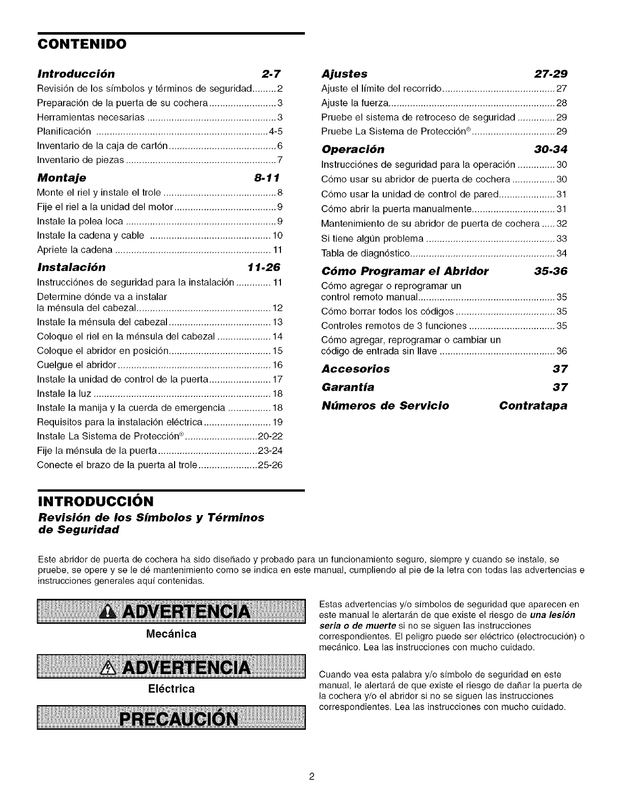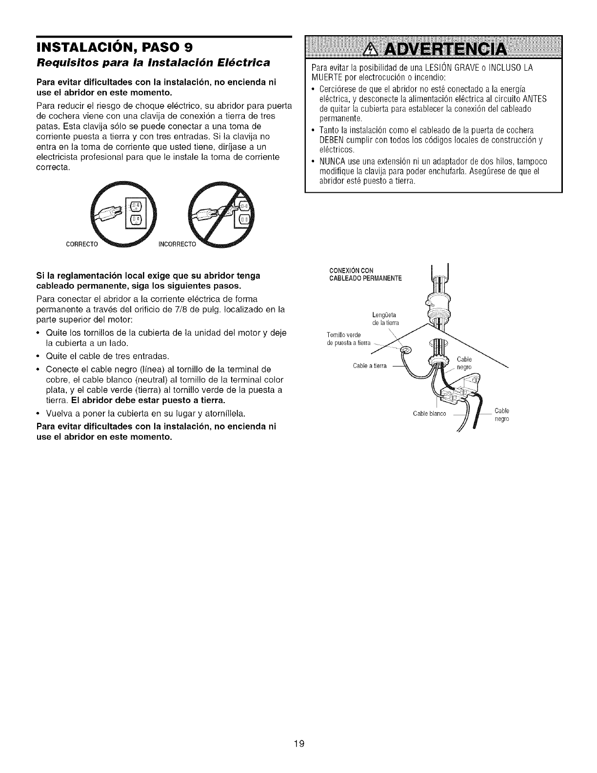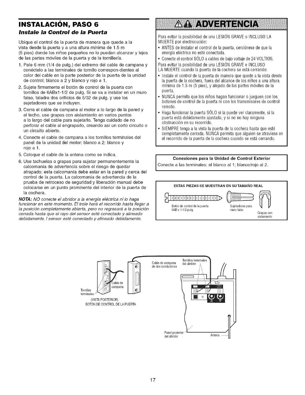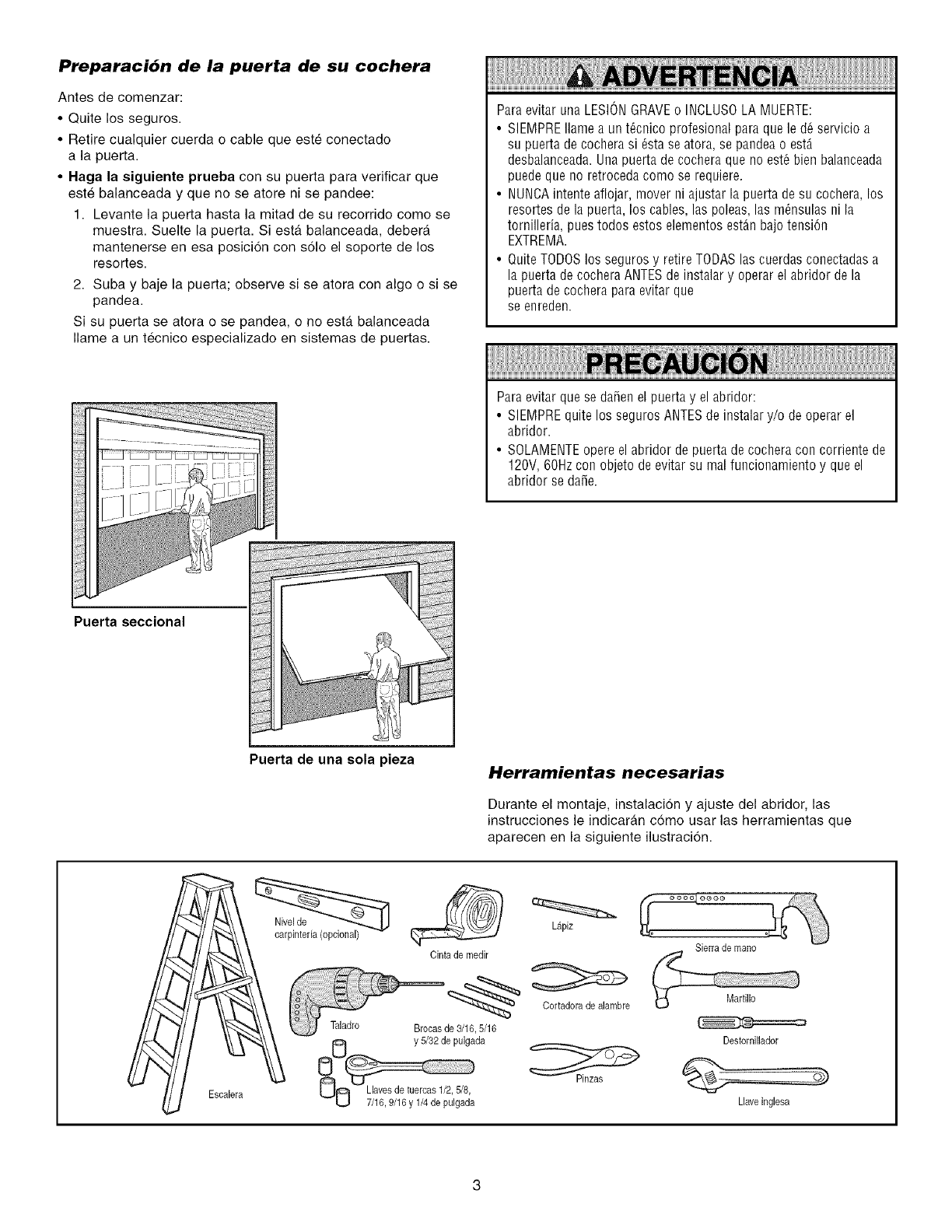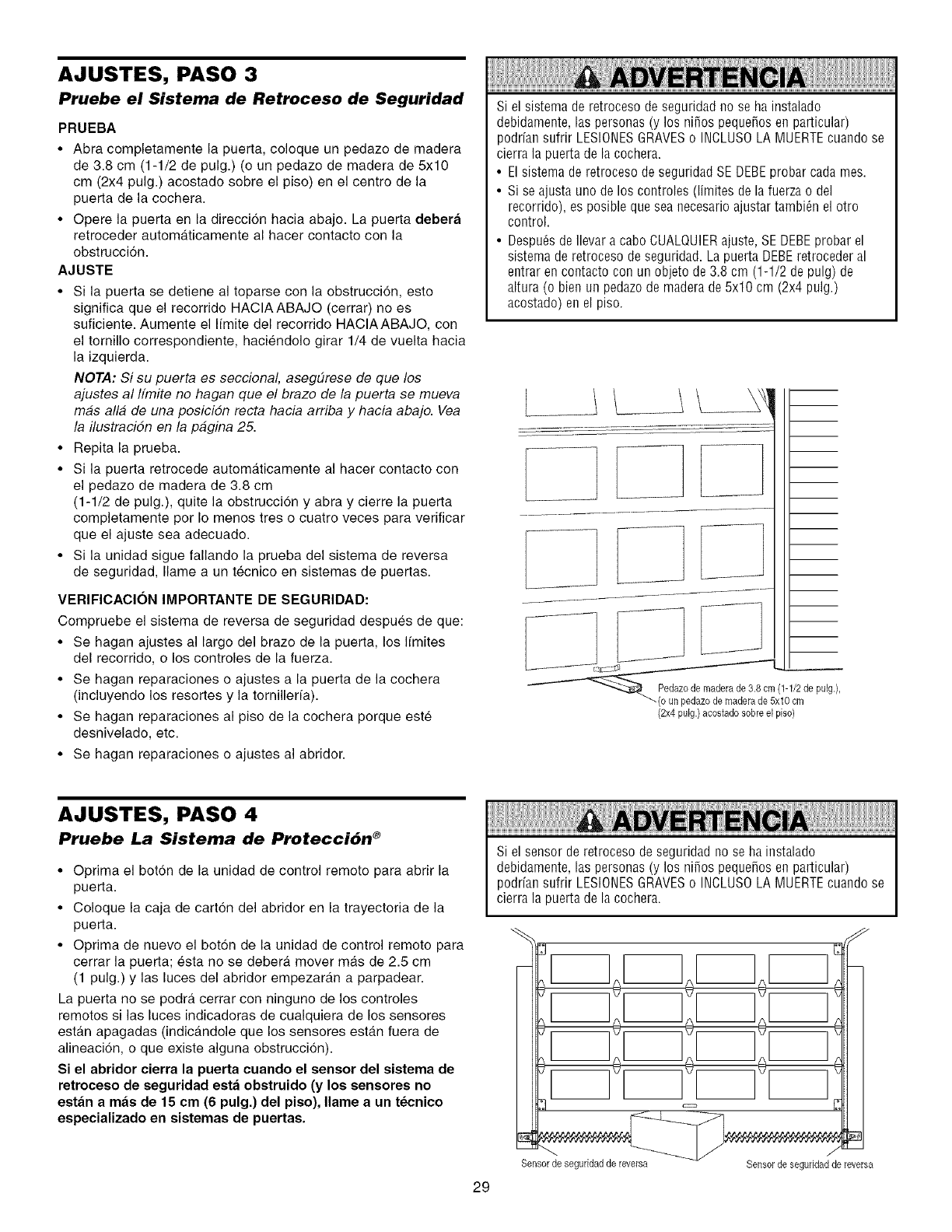 cabo la instalaci6n, ajuste y operaci6n de este abridor de puerta de cochera de acuerdo alas instrucciones contenidas en el instructive del propietario. Eata
