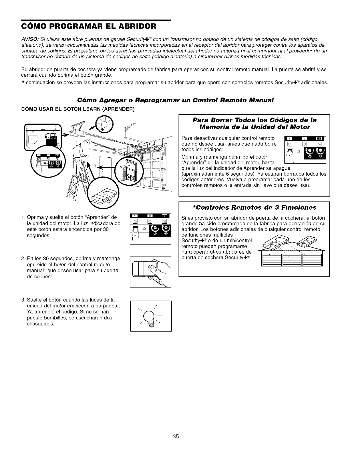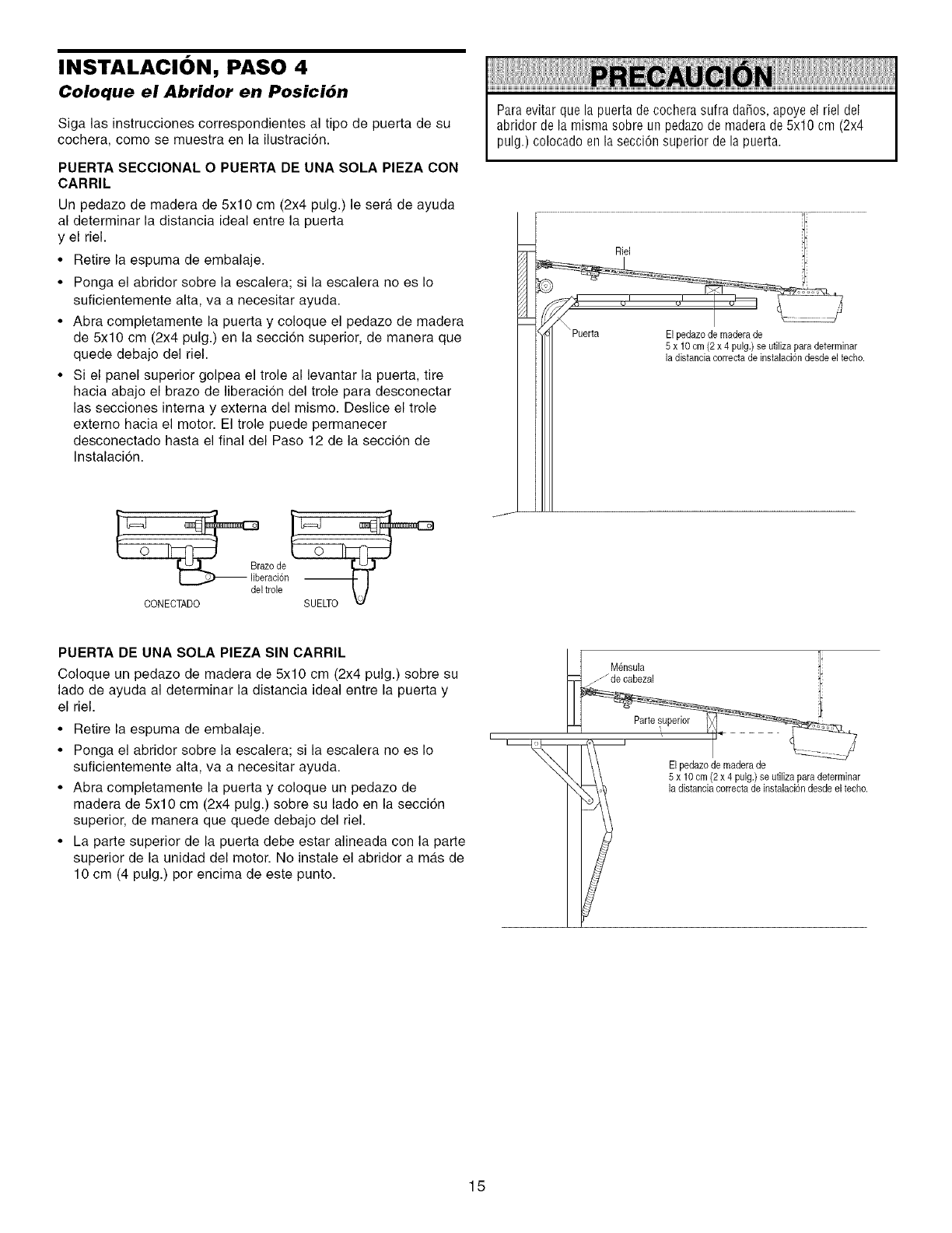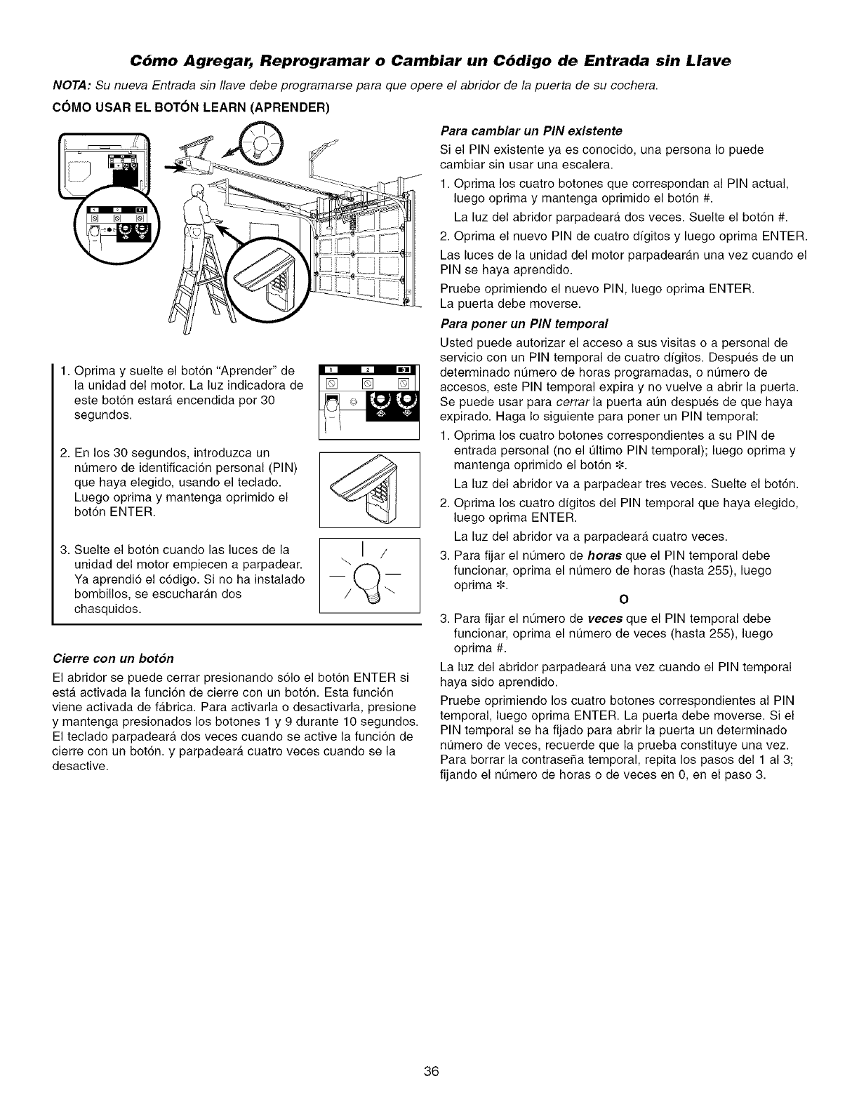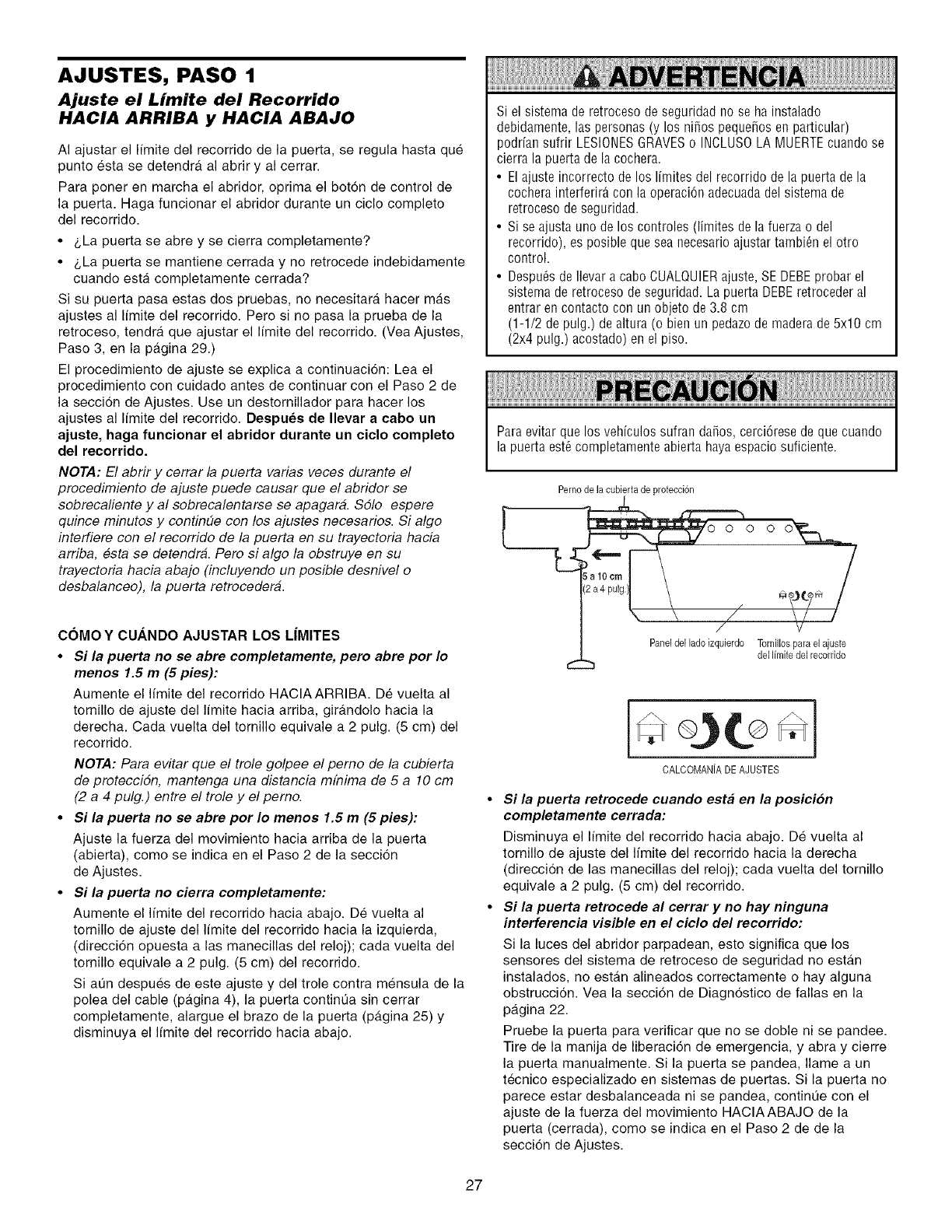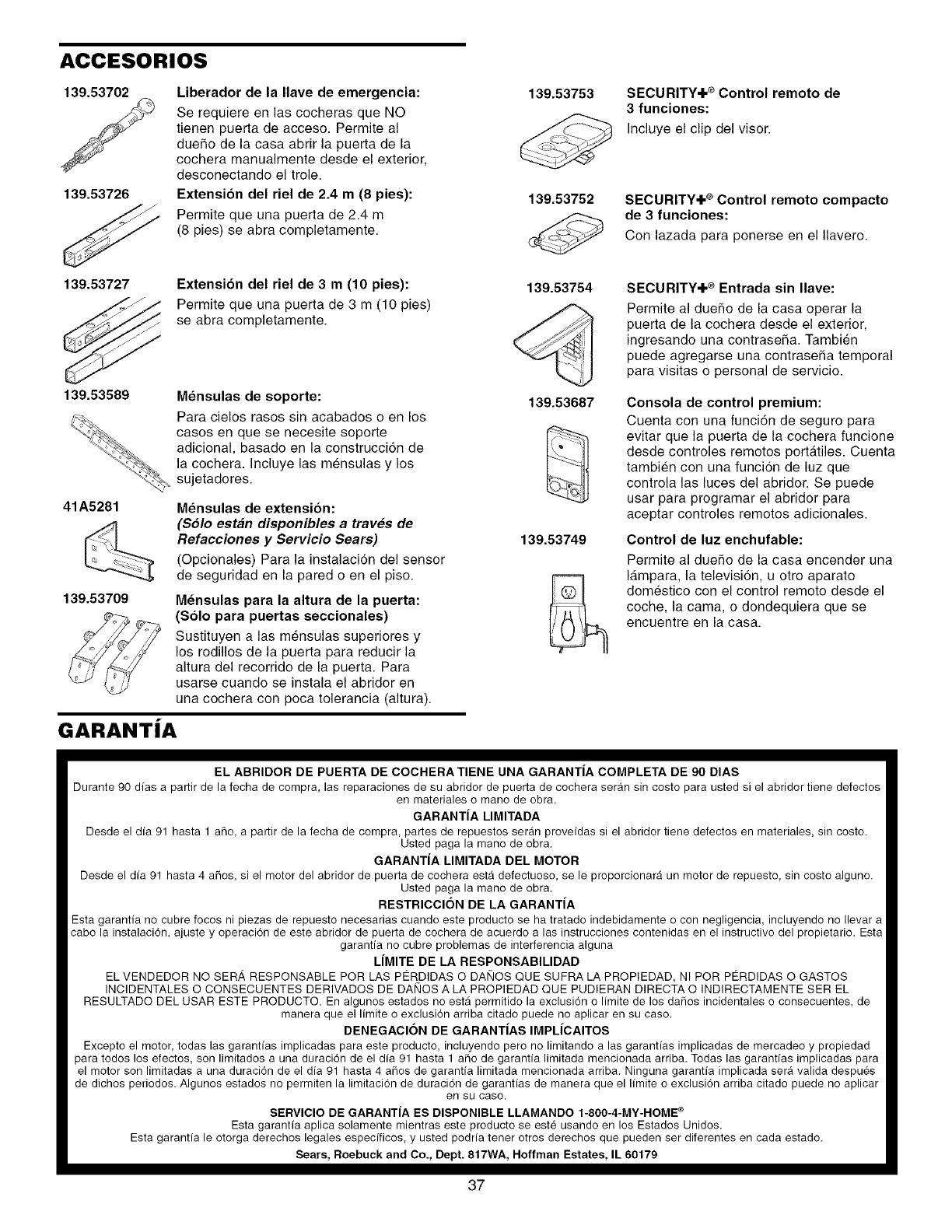 cabo la instalaci6n, ajuste y operaci6n de este abridor de puerta de cochera de acuerdo alas instrucciones contenidas en el instructive del propietario. Eata