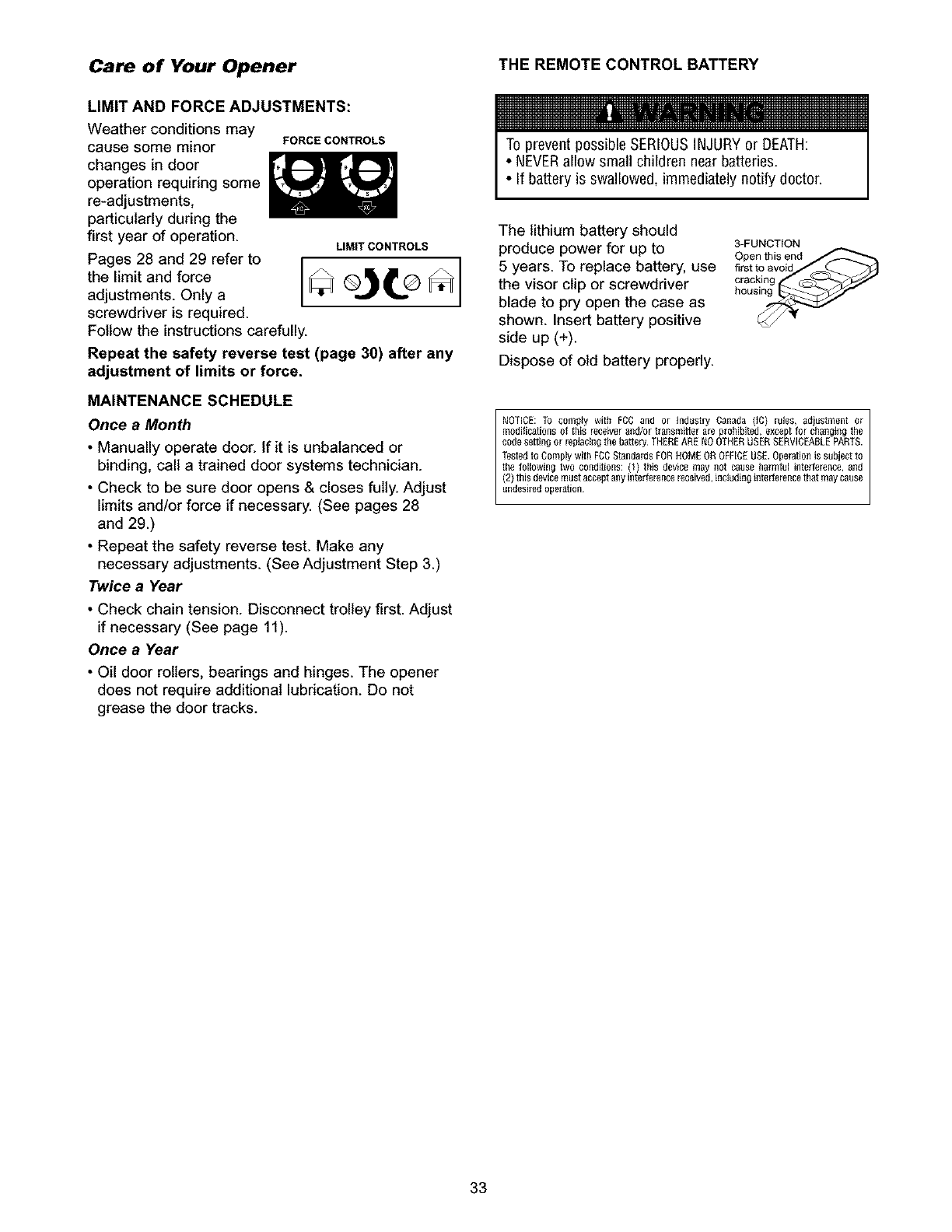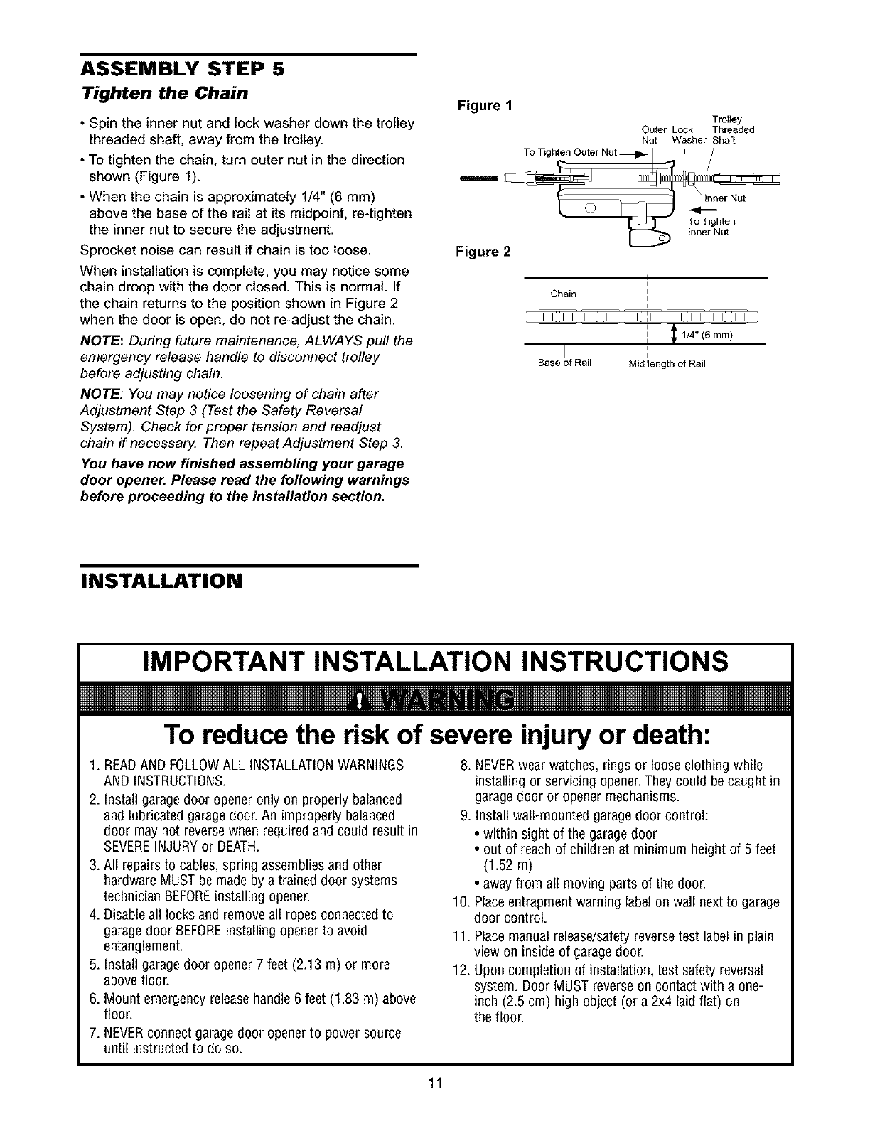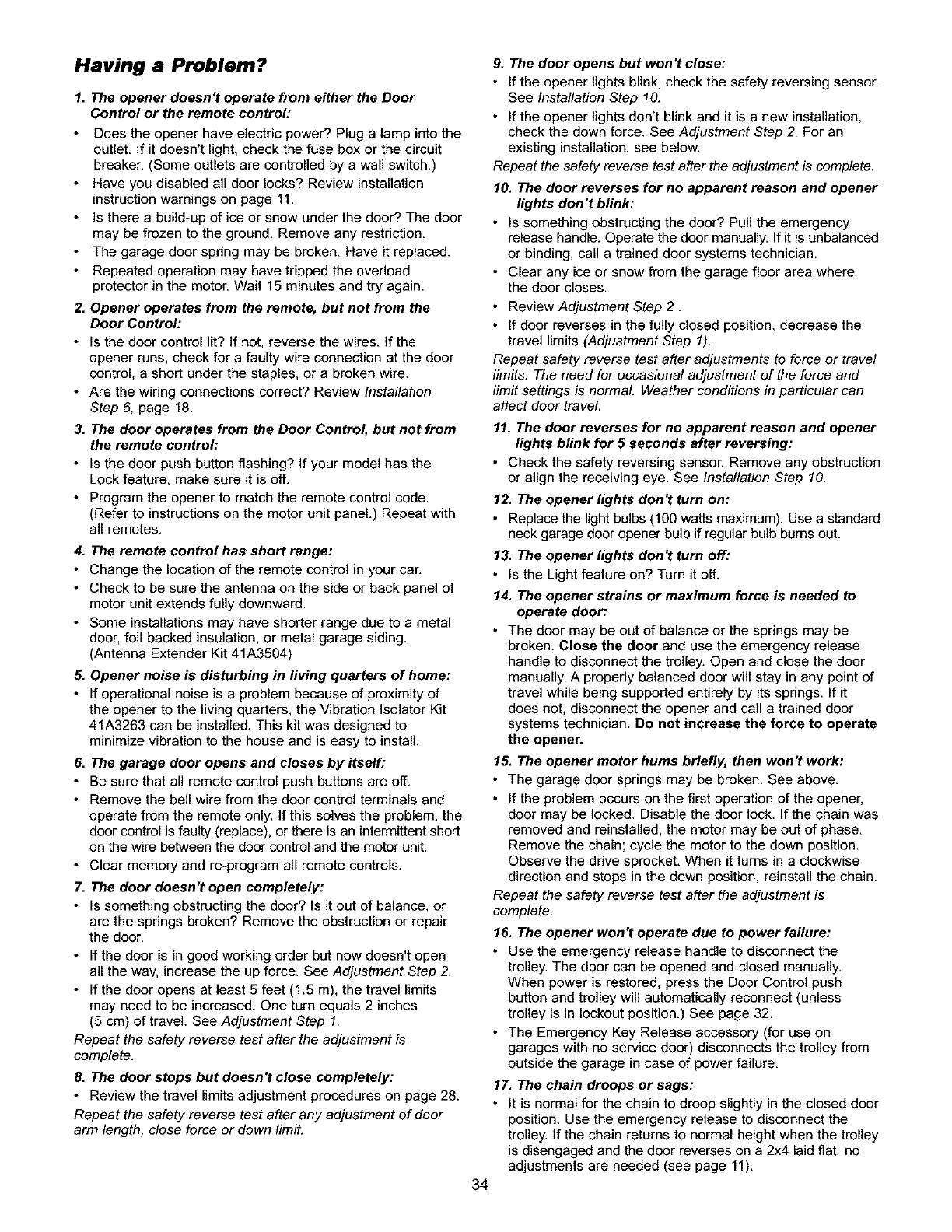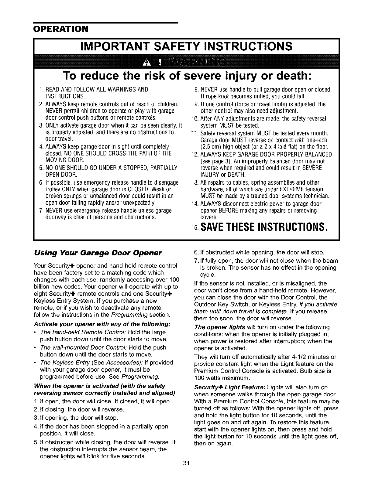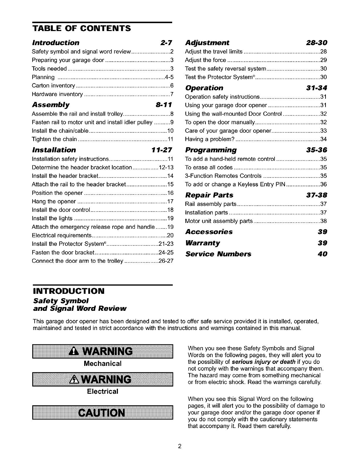This garage door opener has been designed and tested to offer safe service provided it is installed, operated,