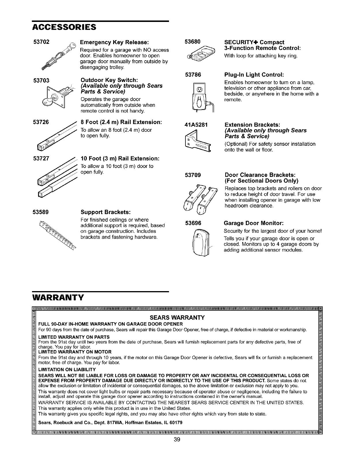 Desde el dia 91 hasta 10 afos, si el motor del abridor de puerta de cochera es defectuosa, Sears reparar o proporcionara, sin cargo alguno, un motor. La