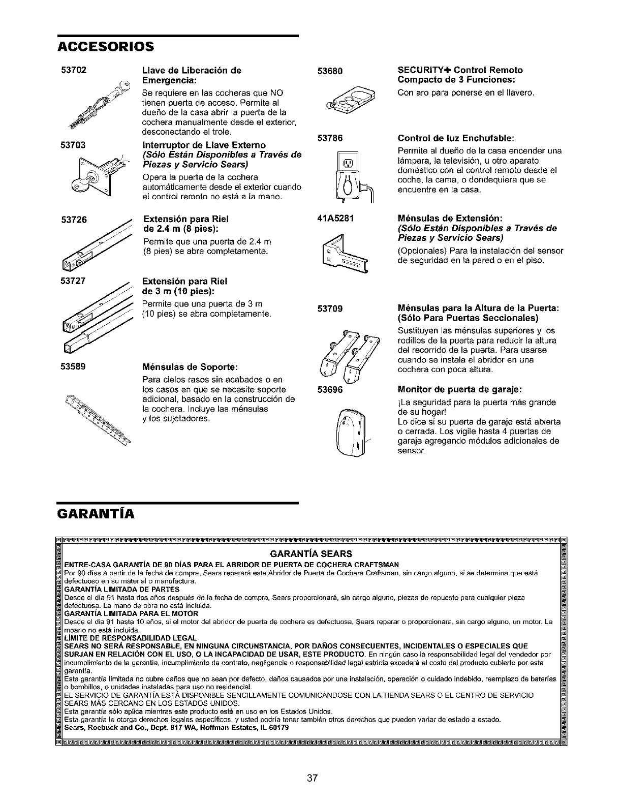 ENTRE-CASA GARANTiA DE 90 DiAS PAPA EL ADRIDOR DE PUERTA DE COCHERA CRAFTSMAN