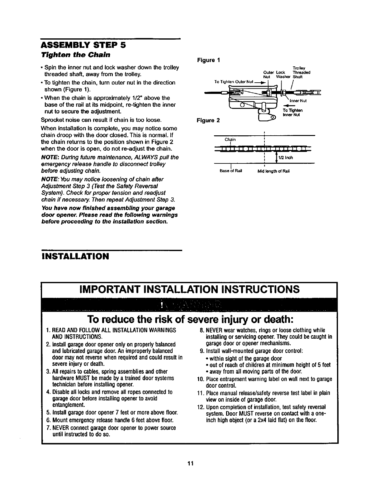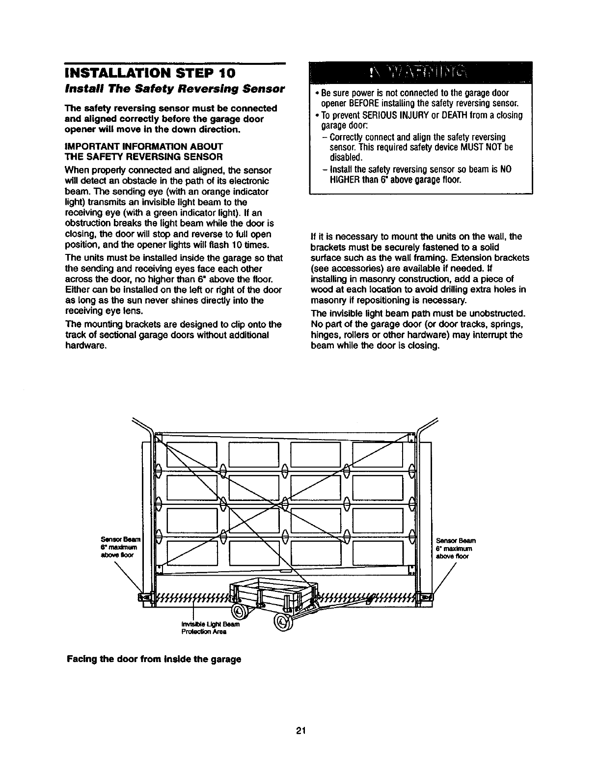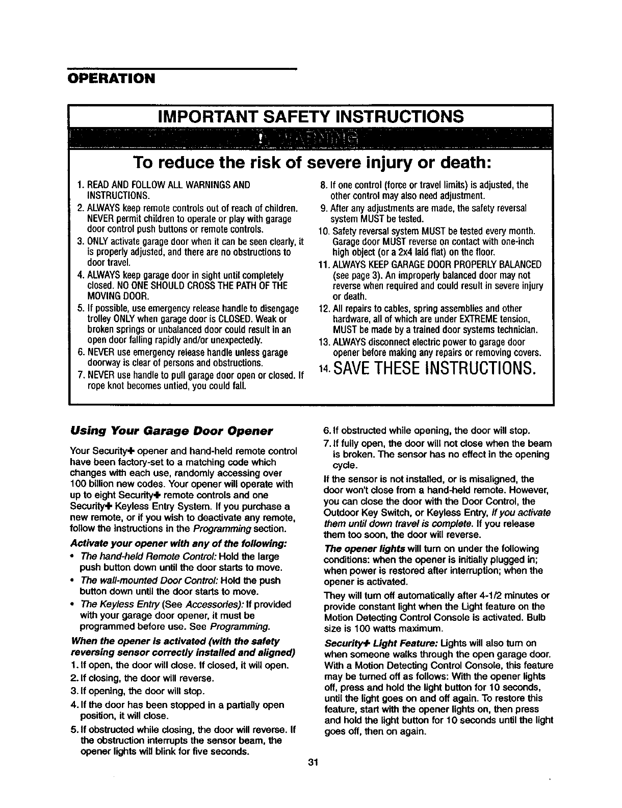 This garage door opener has been designed and tested to offer safe serviceprovided it is installed,operated,
