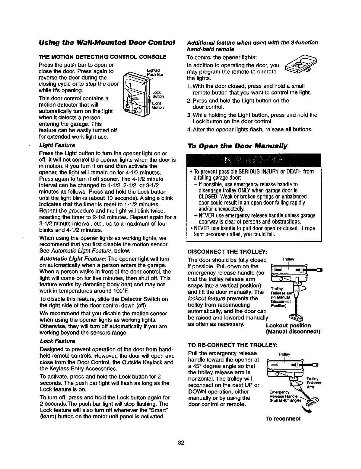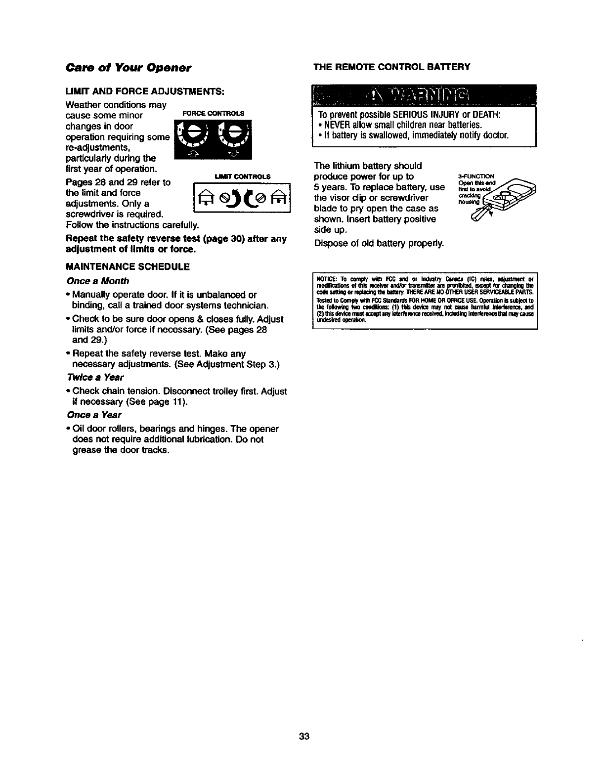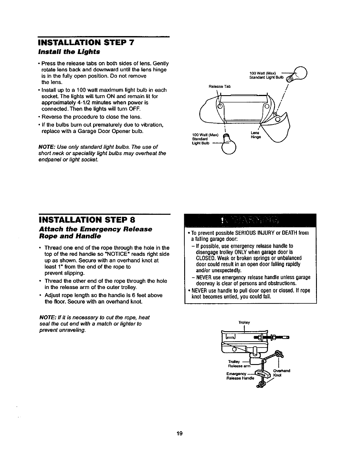 This garage door opener has been designed and tested to offer safe serviceprovided it is installed,operated,