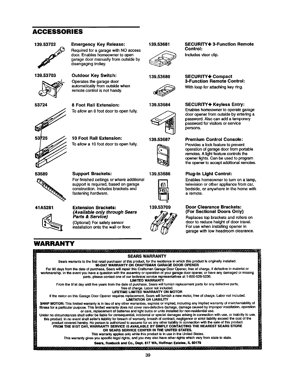 gO-DAY WARRANTY ON CRAFTSMAN GARAGE DOOR OPENER