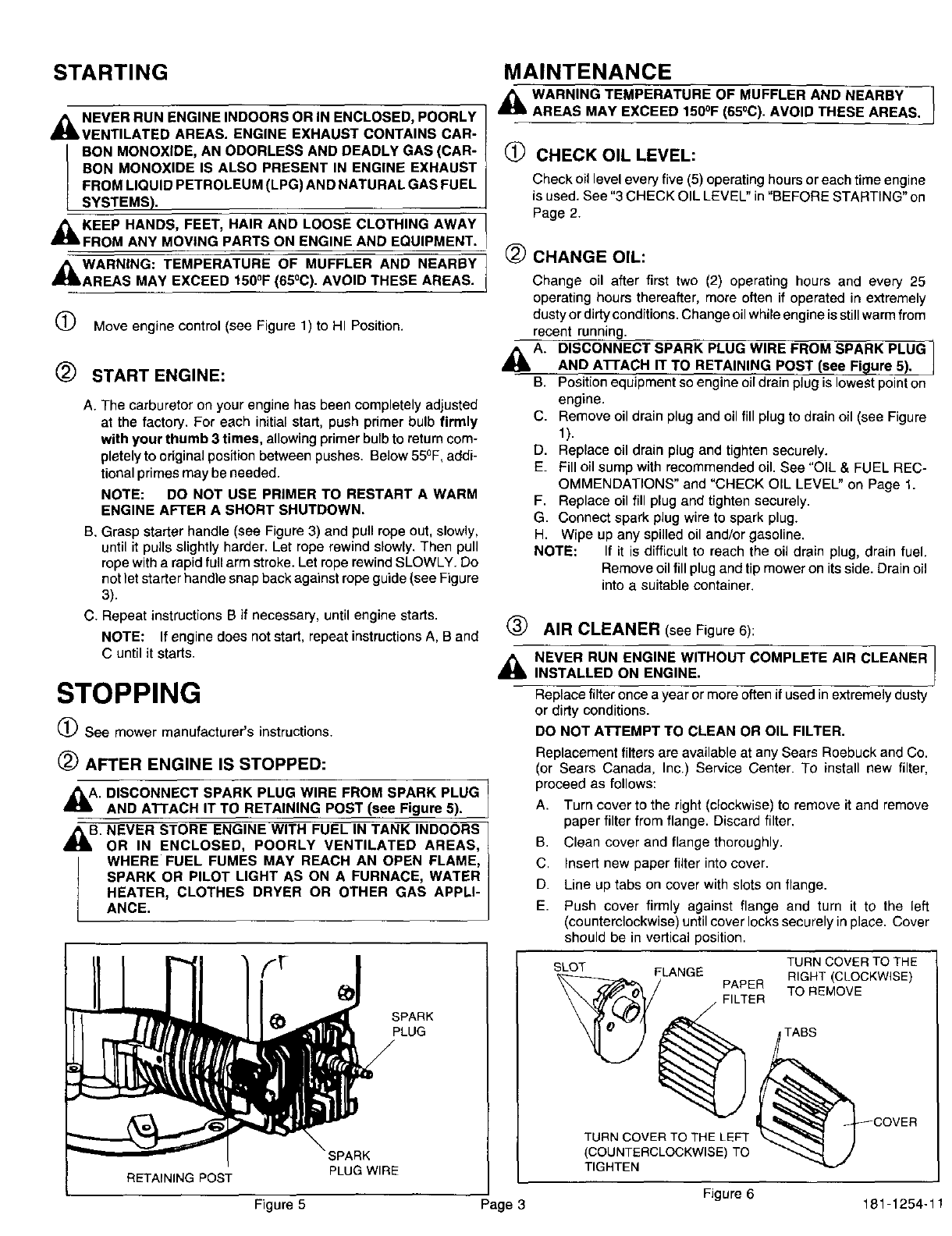 MOTIVE GASOLINE ONLY. DO NOT USE LEADED _DISCONNECT SPARK PLUG WIRE FROM SPARK PLUG AND AT-
