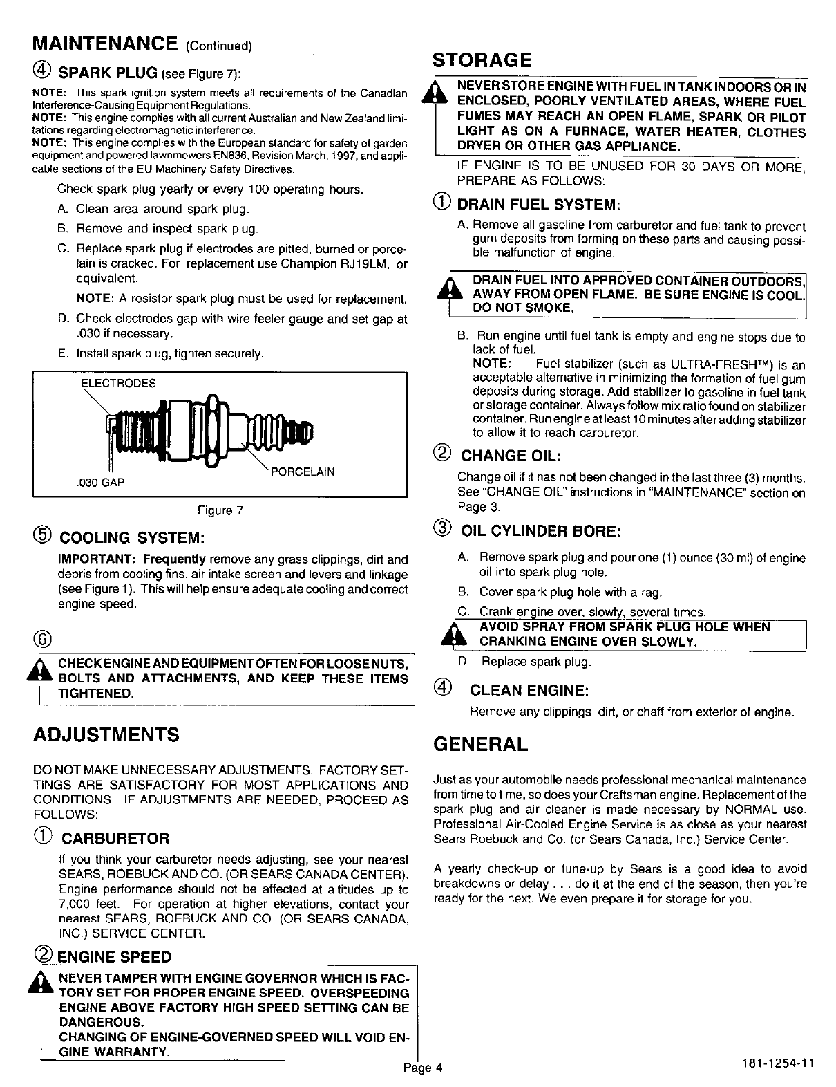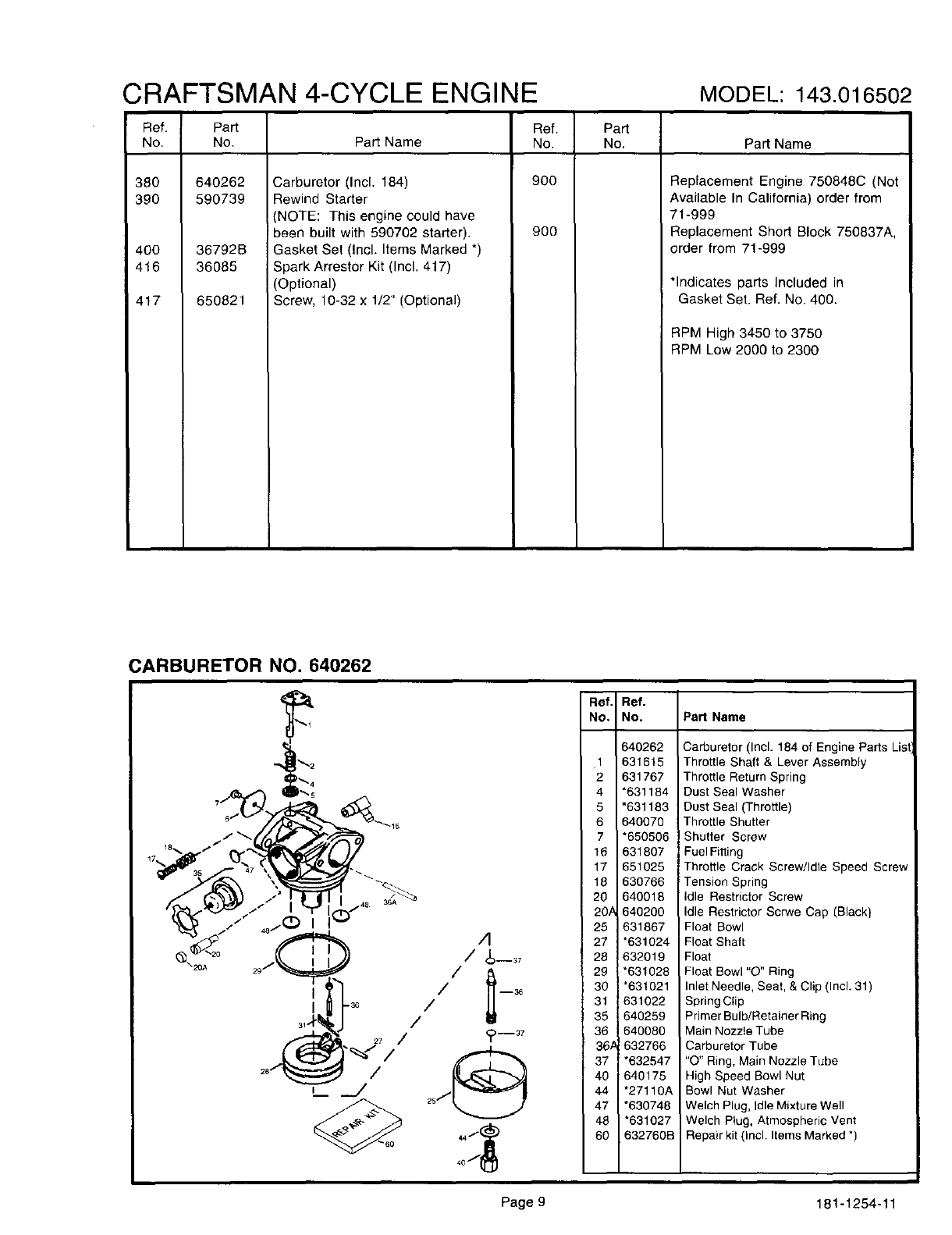 Craftsman 143016502 User Manual ENGINE Manuals And Guides L0102273
