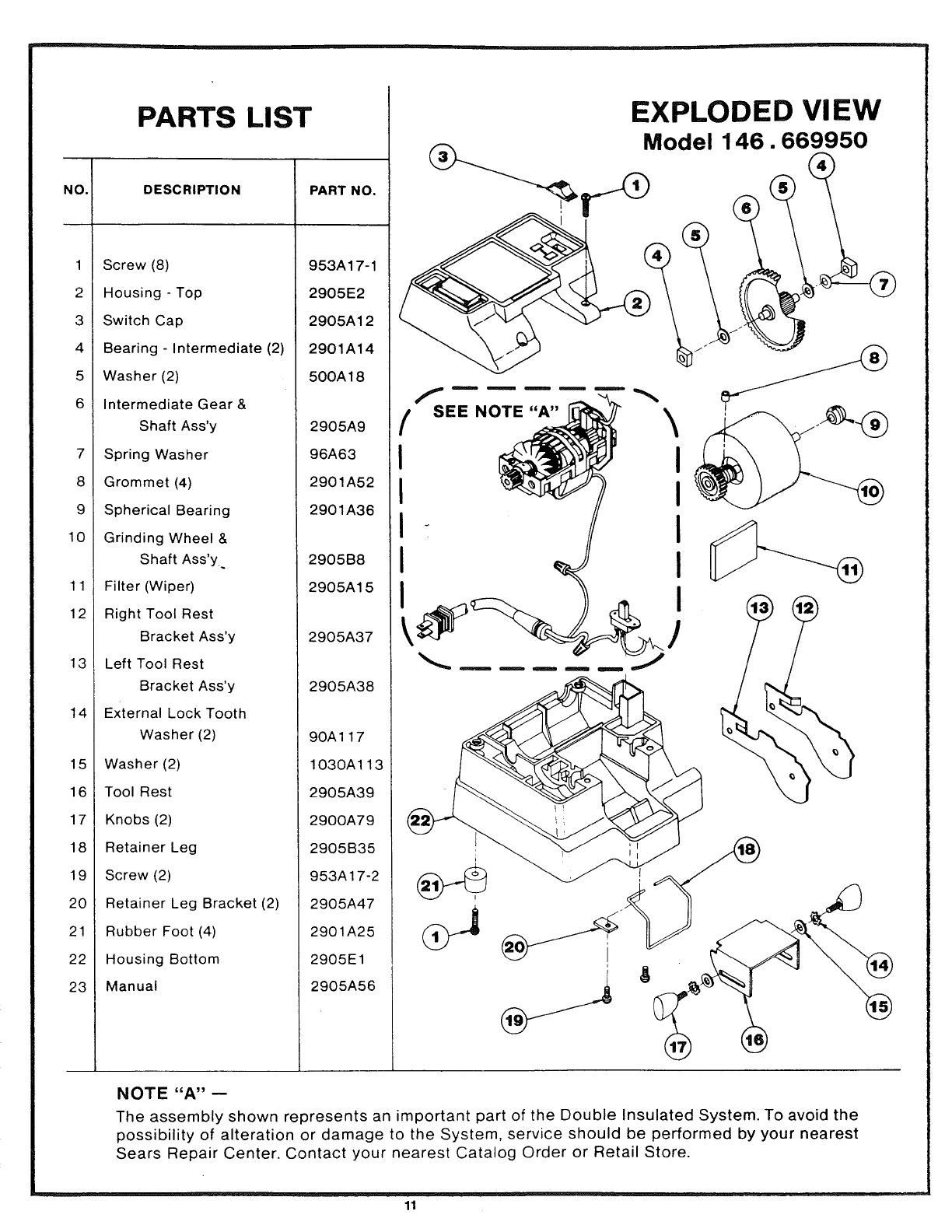 SEARS. ROEBUCK AND CO.. Dept. 698/731A. Sears Tower, Chica.clo, IL 60684 Part No. 2905A5€