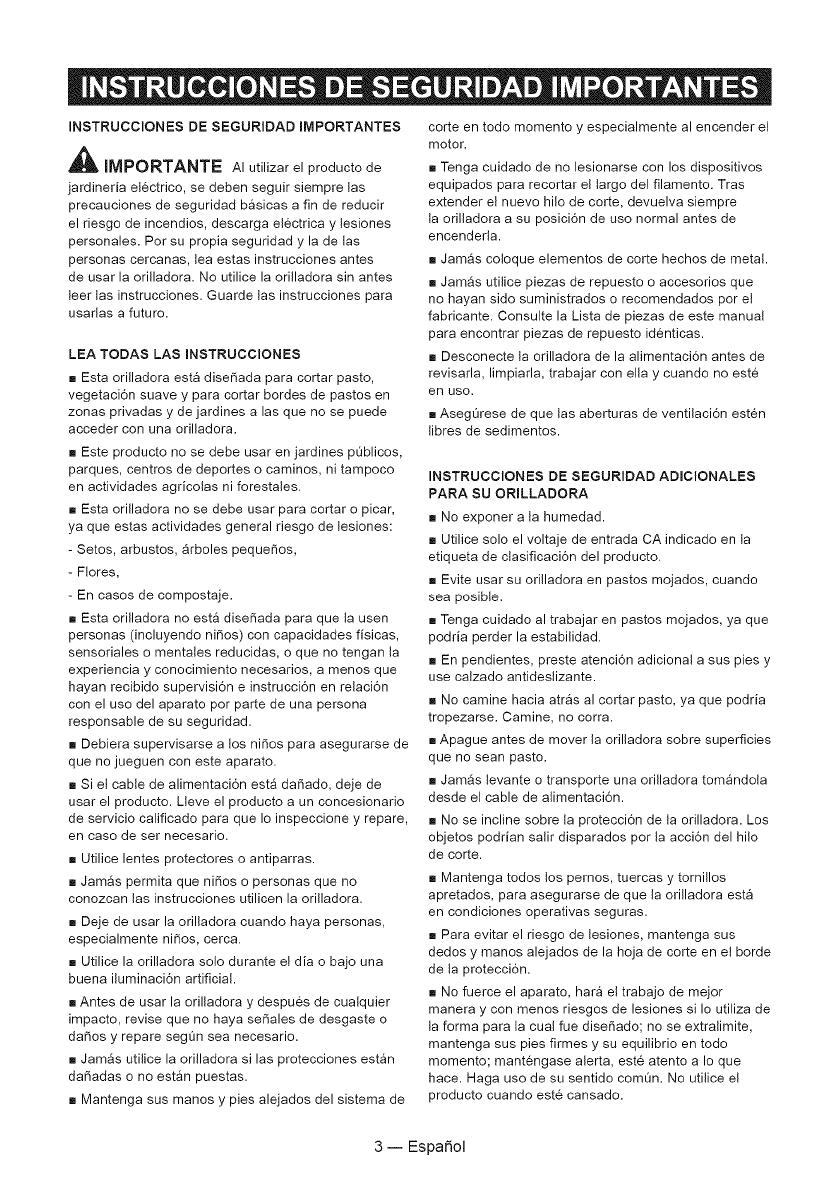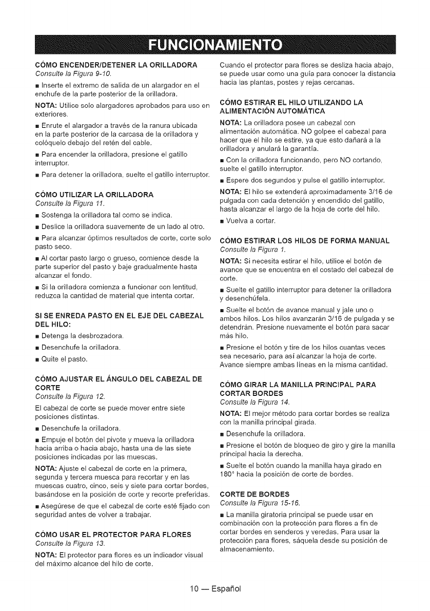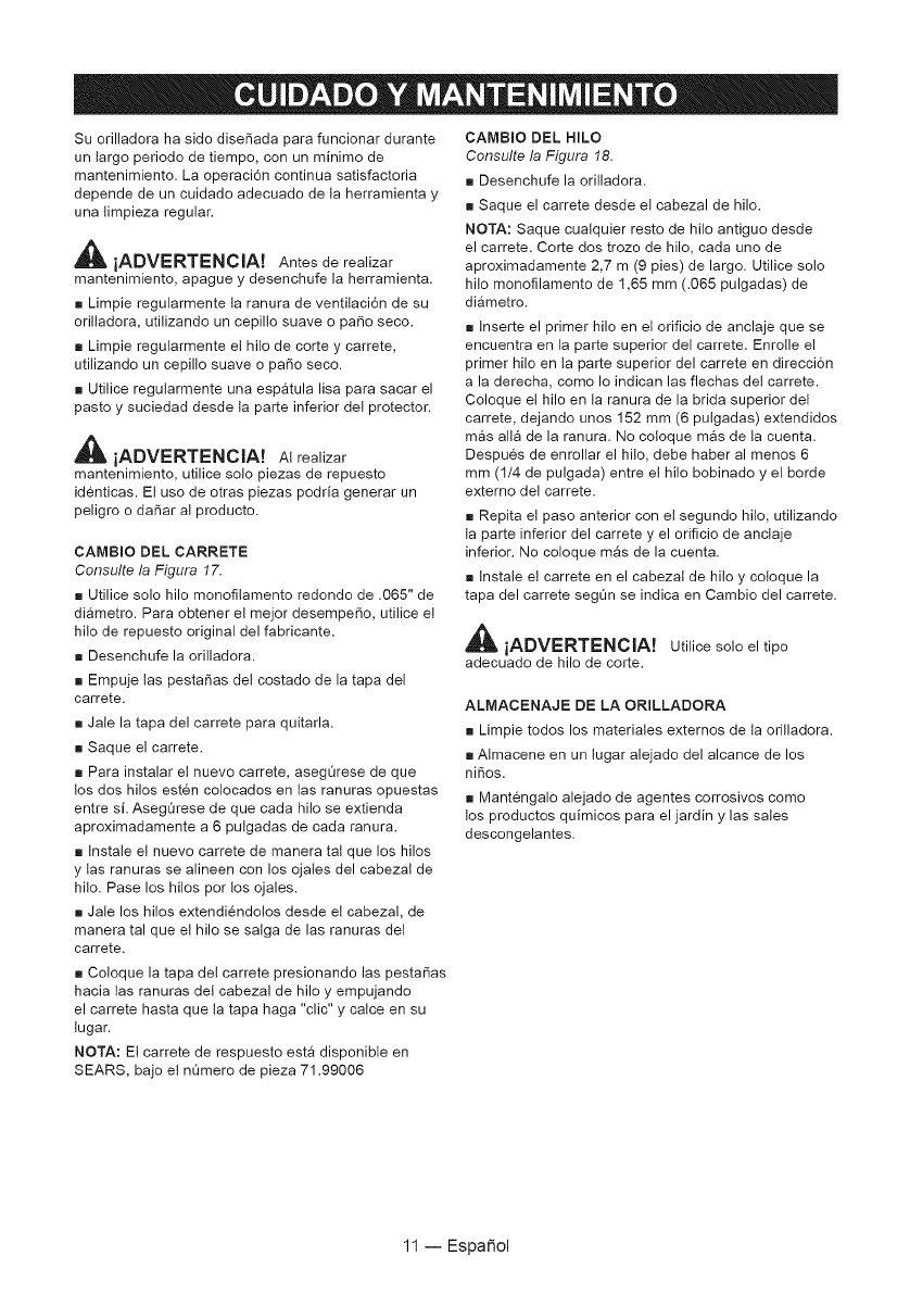 Esta garantia no cubre el carrete del hilo de la orilladora ni ta tapa del cabezal del carrete, tas cuales son piezas