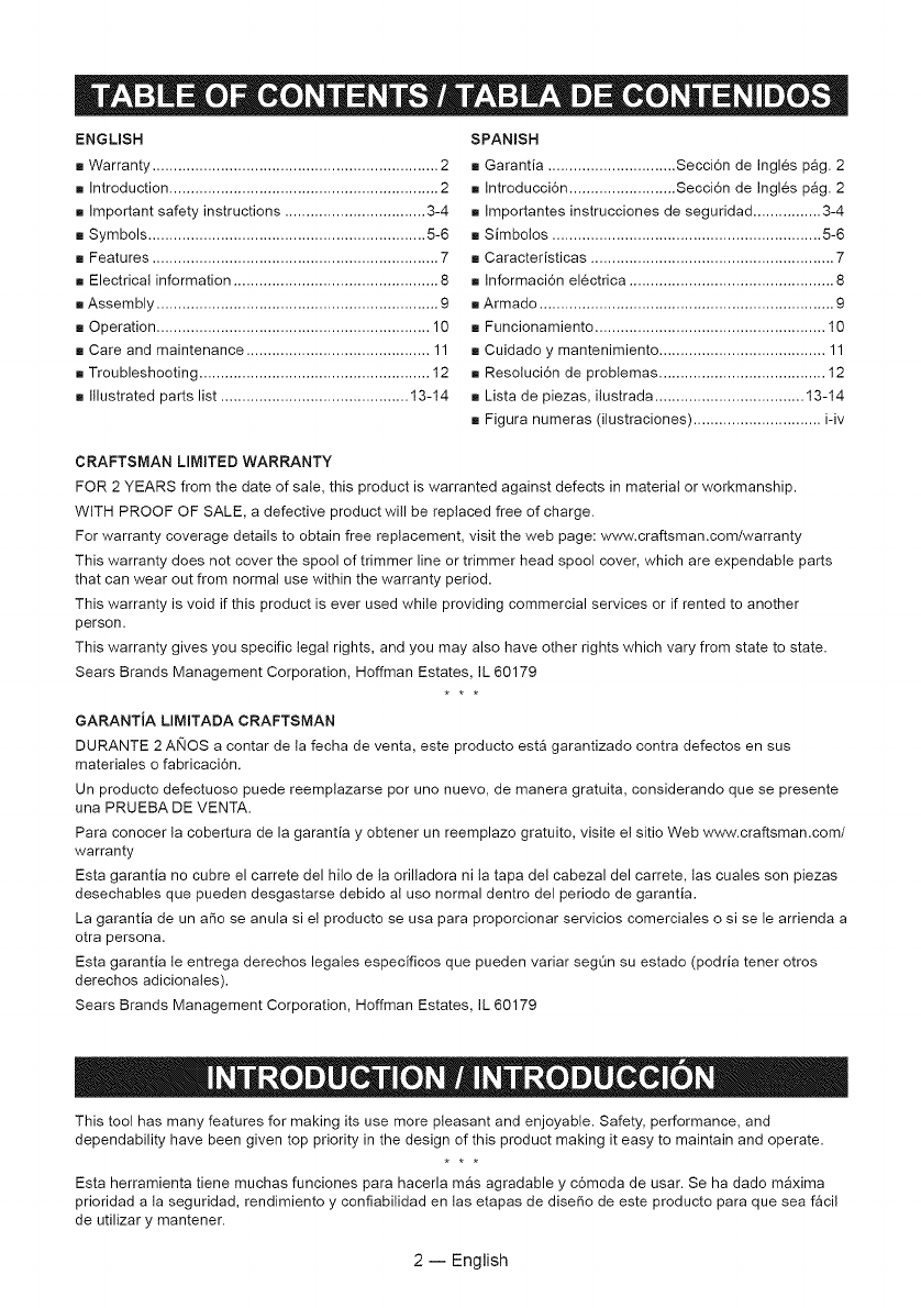 Craftsman 15130378 User Manual TRIMMER Manuals And Guides 1506063L