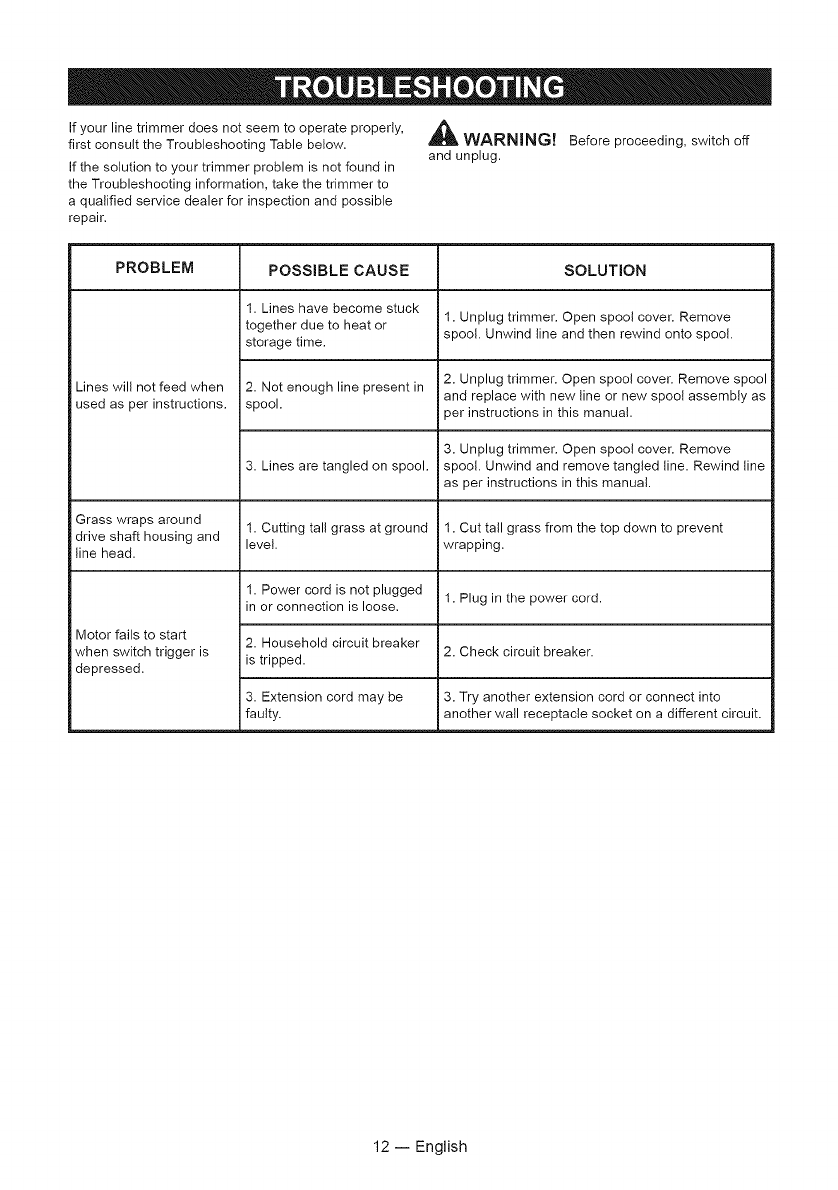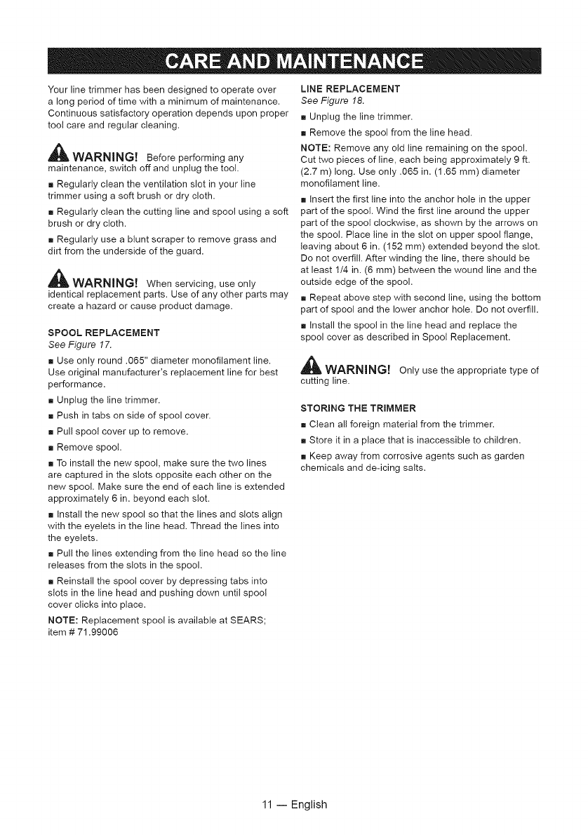 This warranty does not cover the spool of trimmer line or trimmer head spool cover, which are expendable parts
