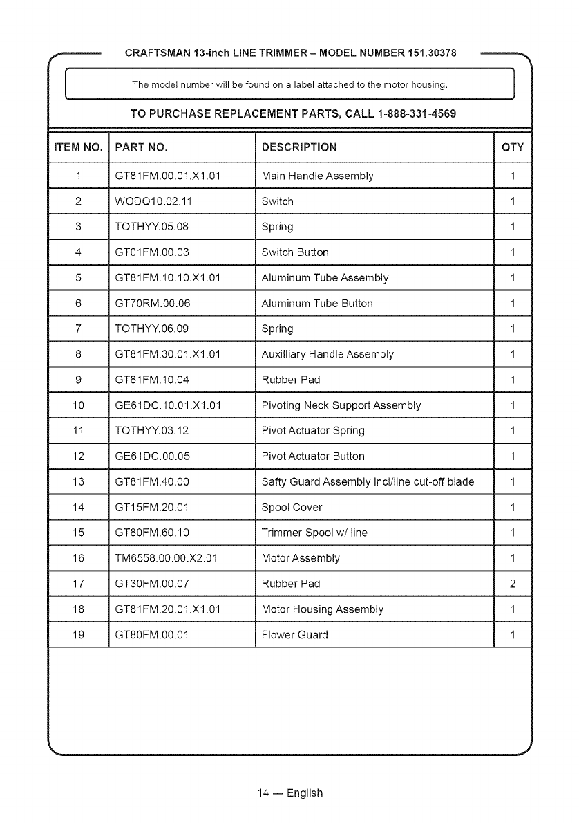 ORILLADORA CRAFTSMAN DE 13 PULGADAS, MODELO NUMERO: