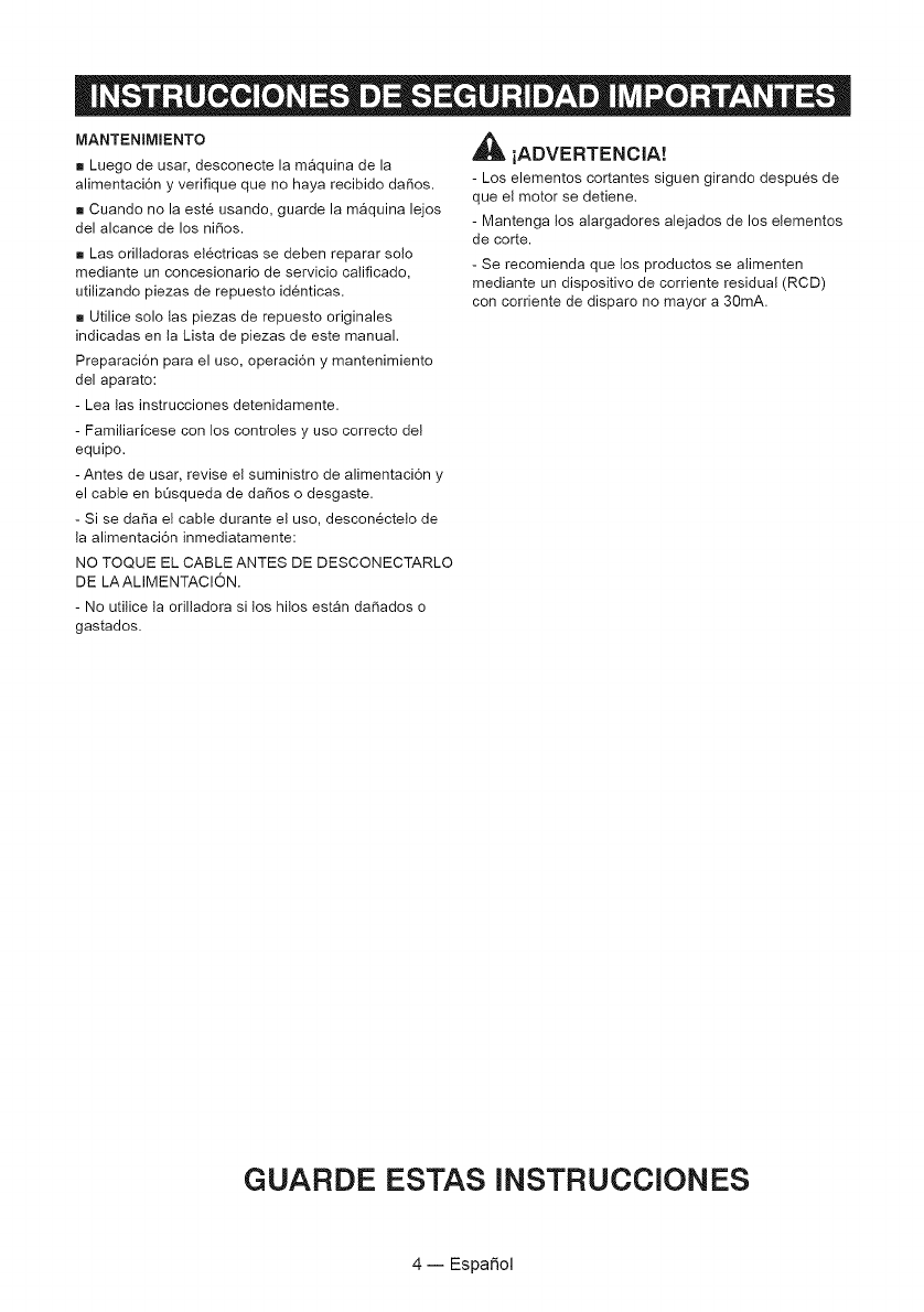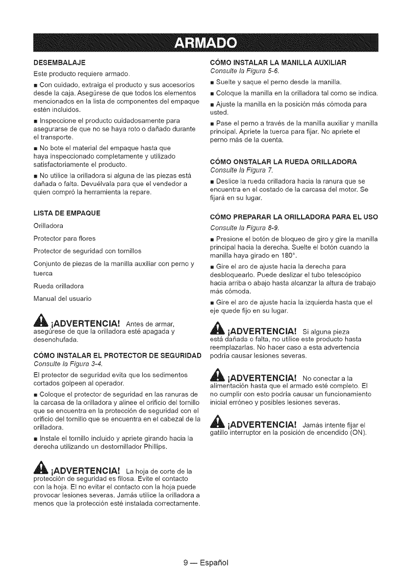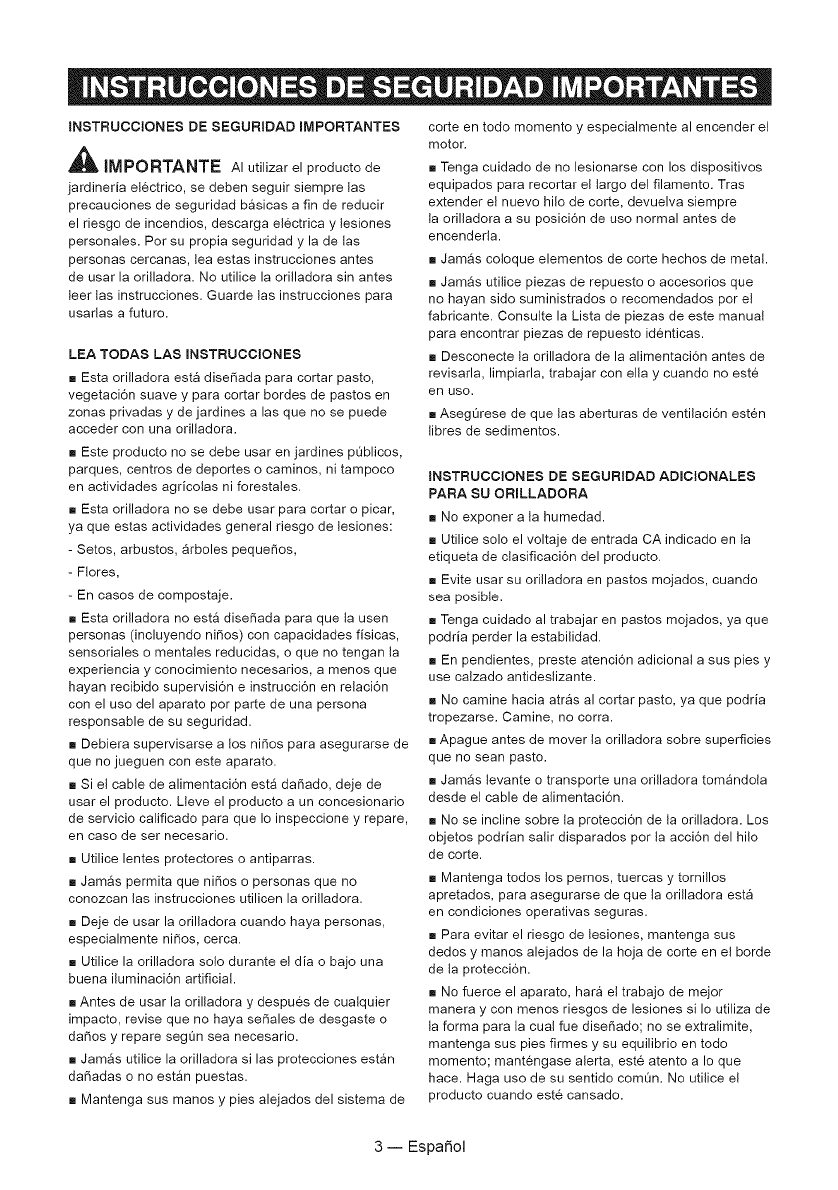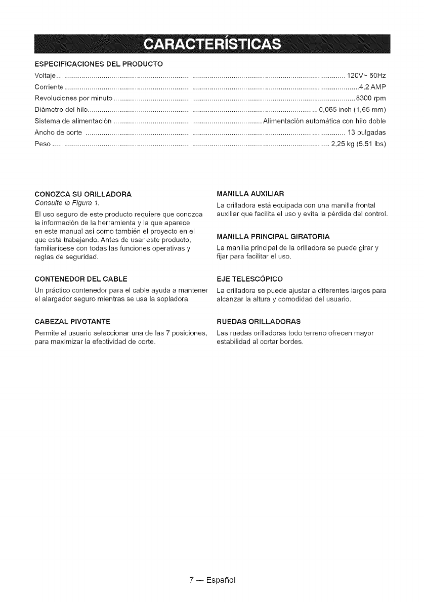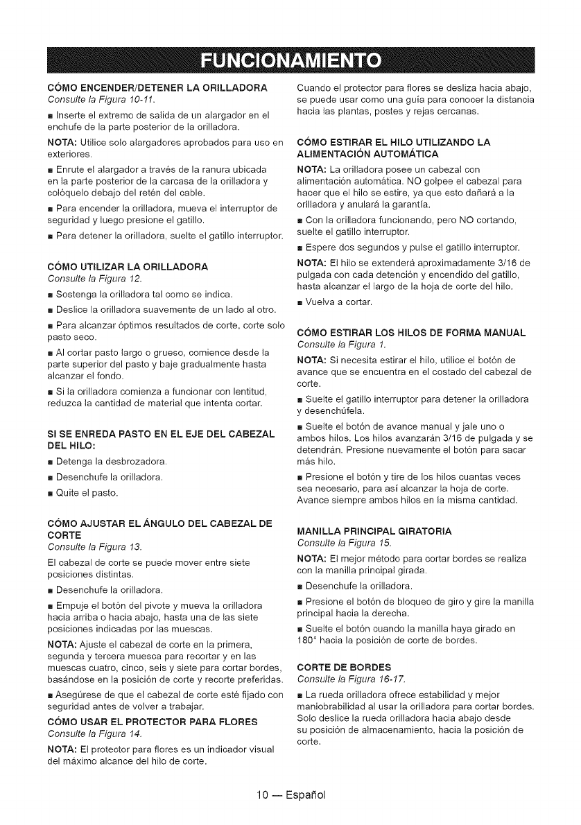 Esta garantia no cubre el carrete del hilo de la orilladora ni la tapa del cabezal del carrete, las cuales son piezas