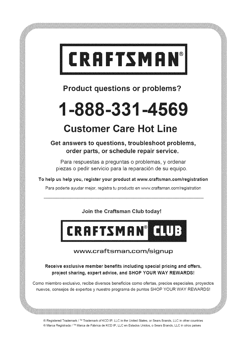 To help us help you, register your product at www.craftsman.com/registration