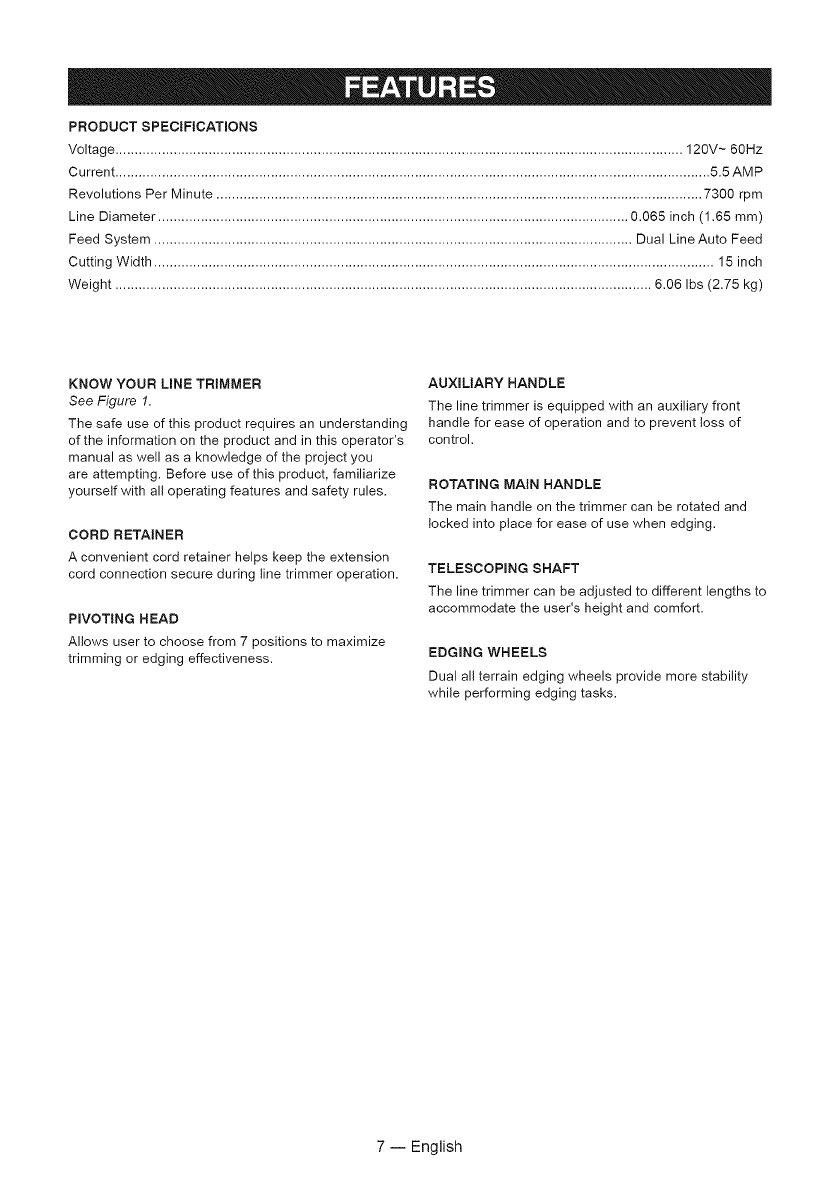 ORILLADORA CRAFTSMAN DE 15 PULGADAS, MODELO NUMERO:
