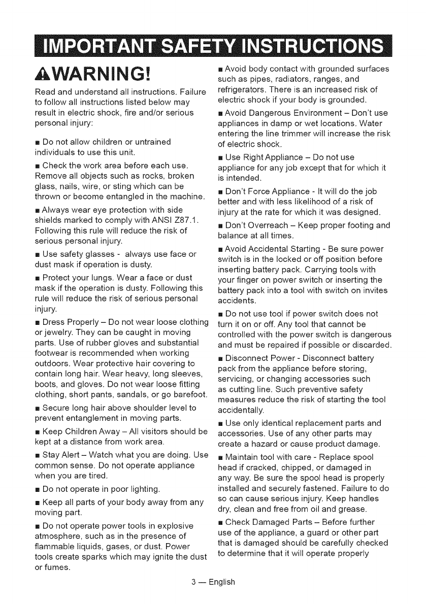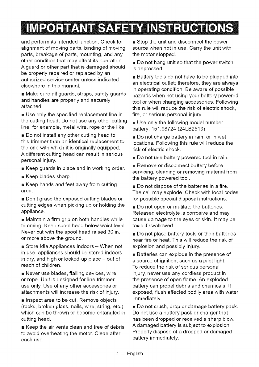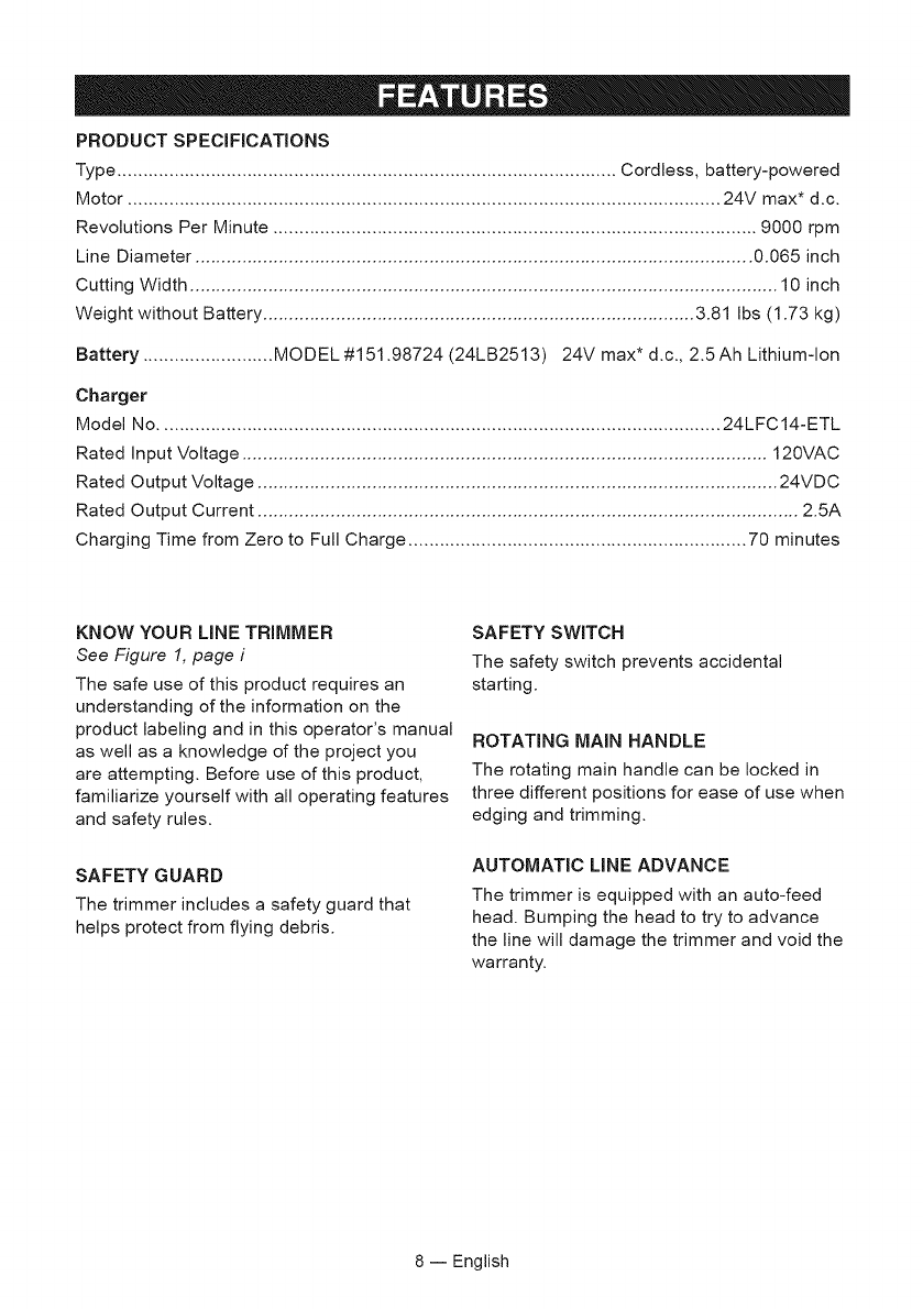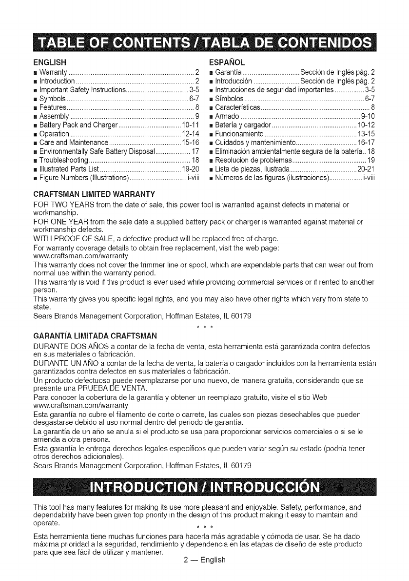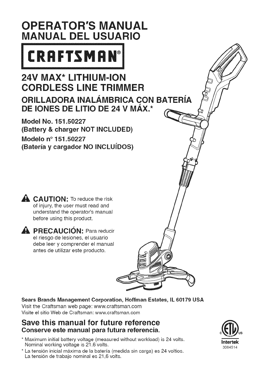 Craftsman 15150227 1602250L User Manual CORDLESS LINE TRIMMER Manuals And Guides