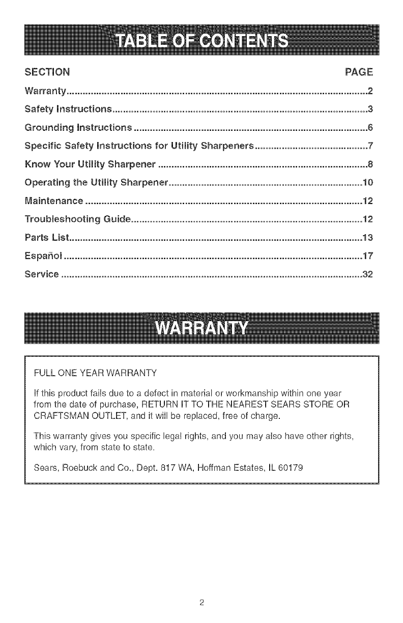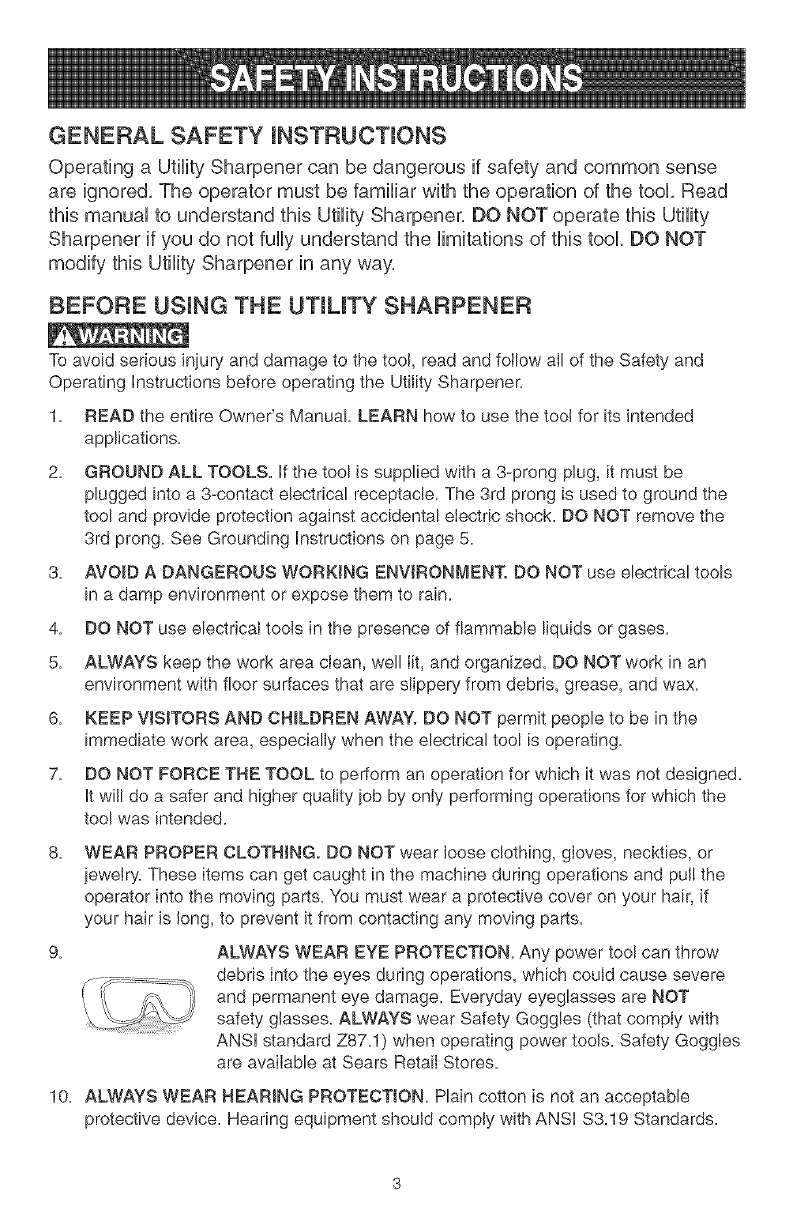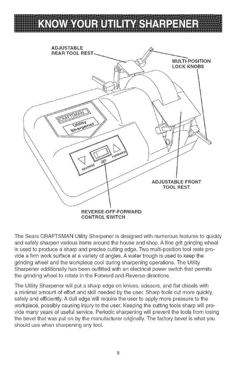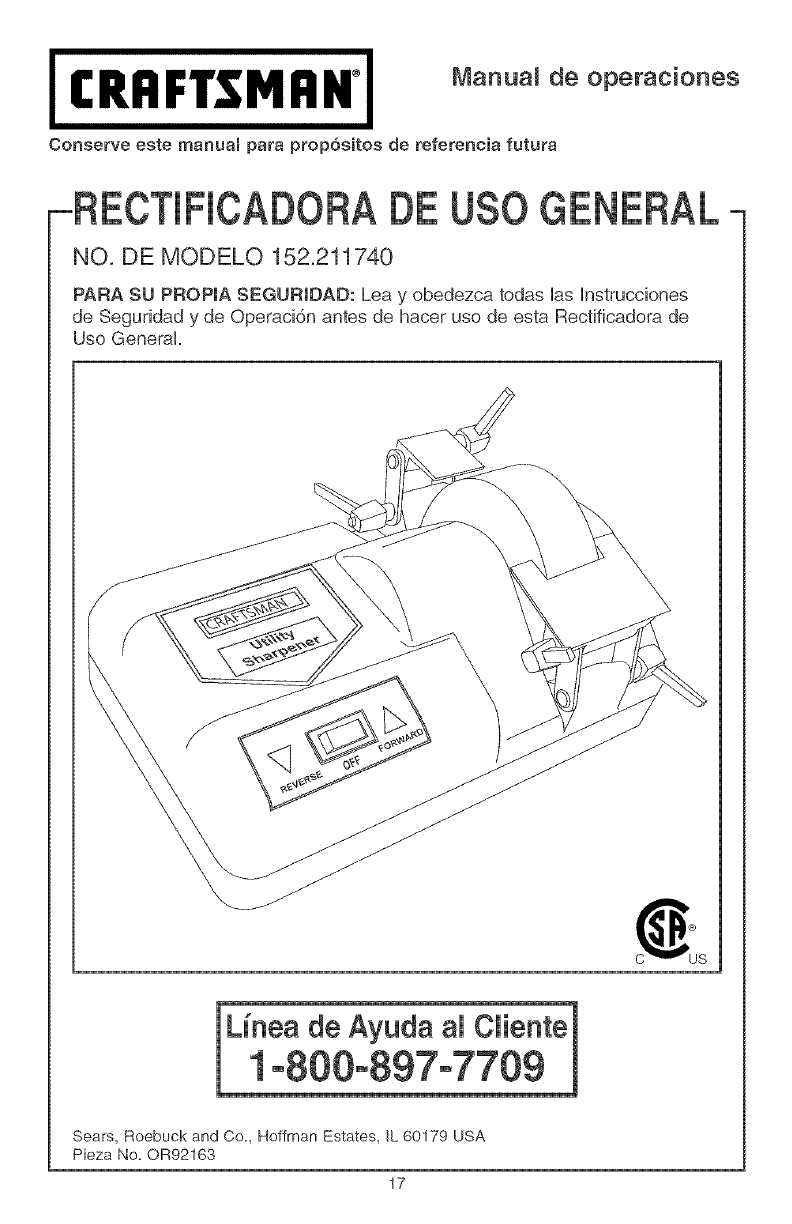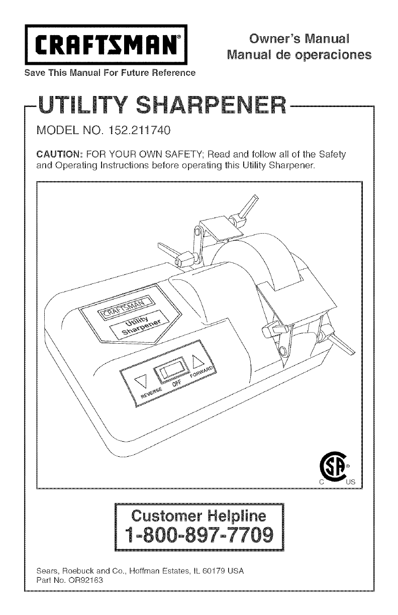 CRAFTSMAN Sharpener Manual L0521113 CRAFTSMAN Sharpener Owner's Manual, CRAFTSMAN Sharpener installation guides