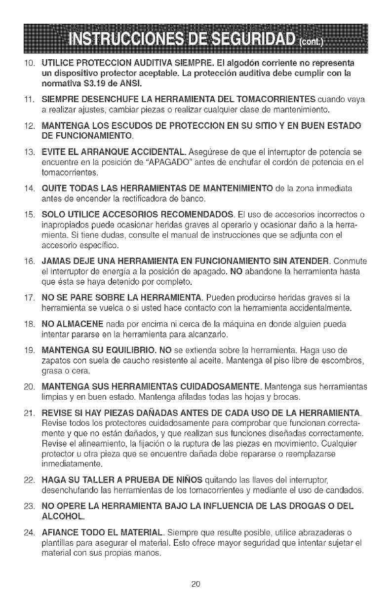 20. MAINTAIN TOOLS WiTH CARE. Always keep tools clean and in good working