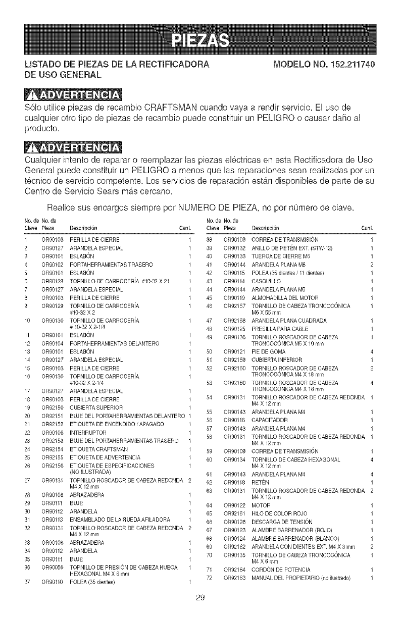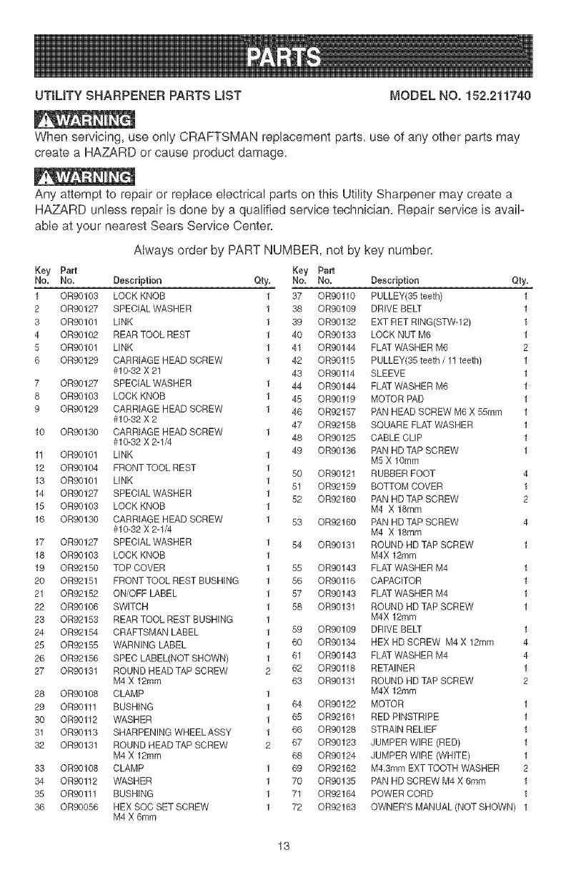 User Manual: Craftsman 152211740 152211740 CRAFTSMAN SHARPENER - Manuals and Guides View the owners manual for your CRAFTSMAN SHARPENER #152211740. Home:Tool Parts:Craftsman Parts:Craftsman SHARPENER Manual