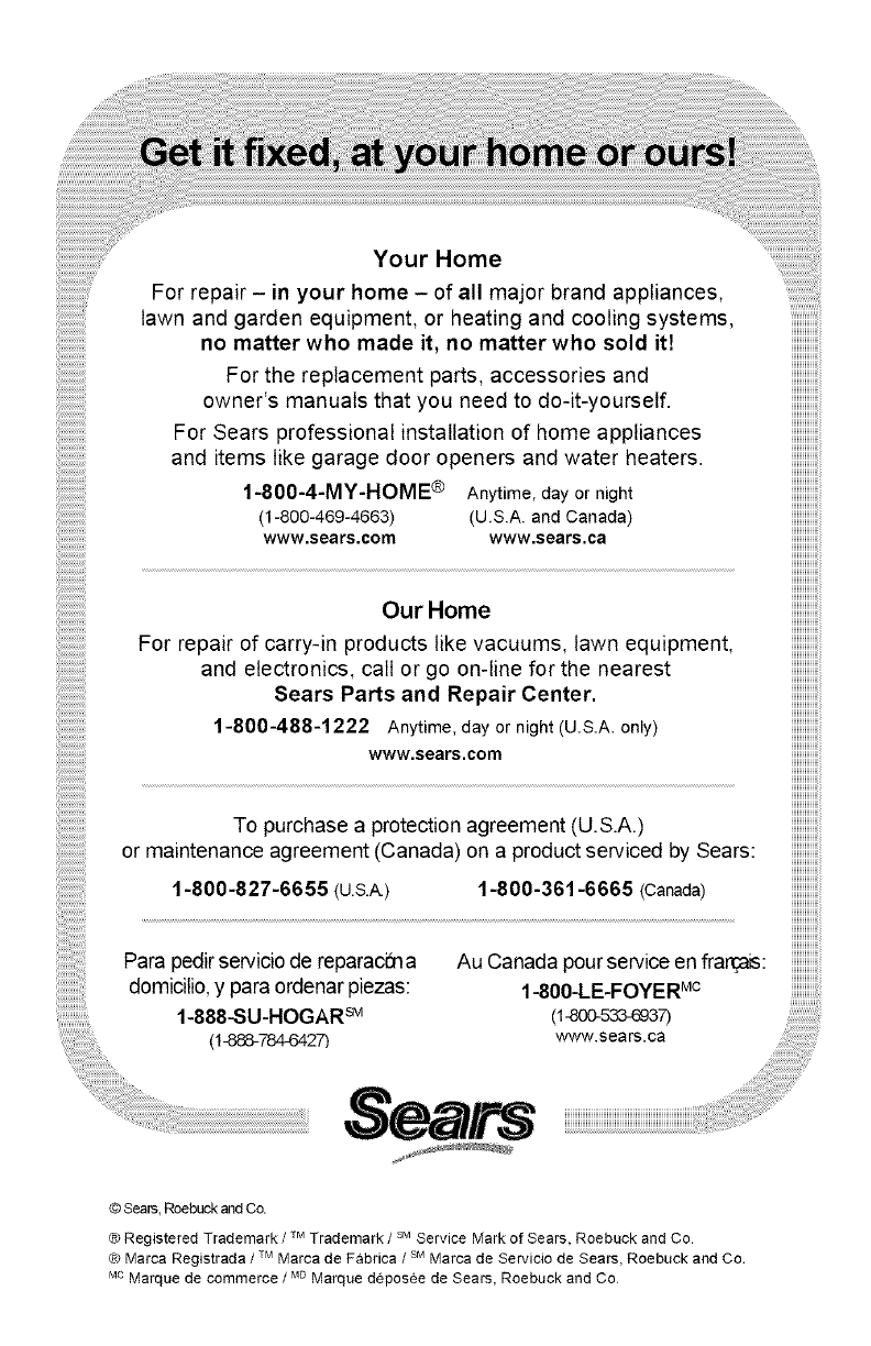 ® Registered Trademark /TMTrademark /SMService Mark of Sears, Roebuck and Co.