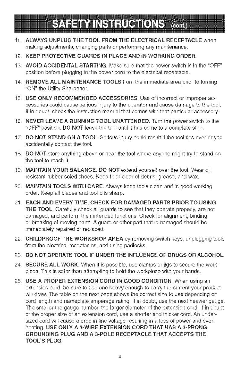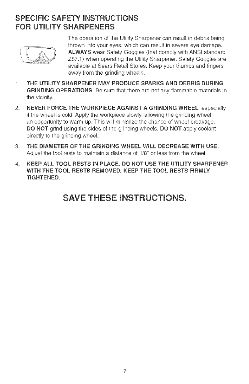 SpecificSafetymnstructionsfor UtilitySharpeners..........................................7