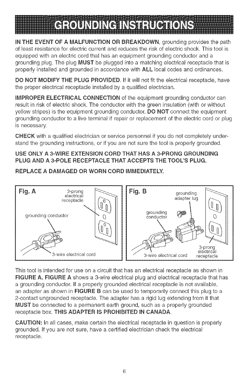 2. GROUND ALL TOOLS. if the tool is supplied with a 3-prong plug, it must be