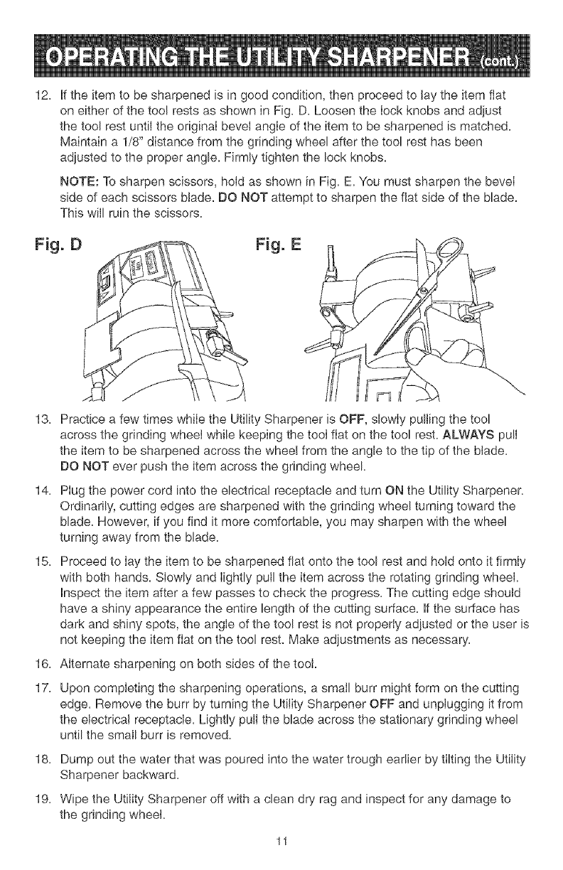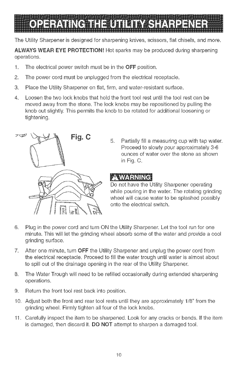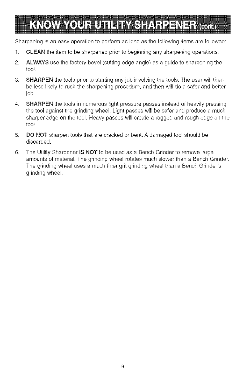 this manual to understand this Utility Sharpener, DO NOT operate this Utility