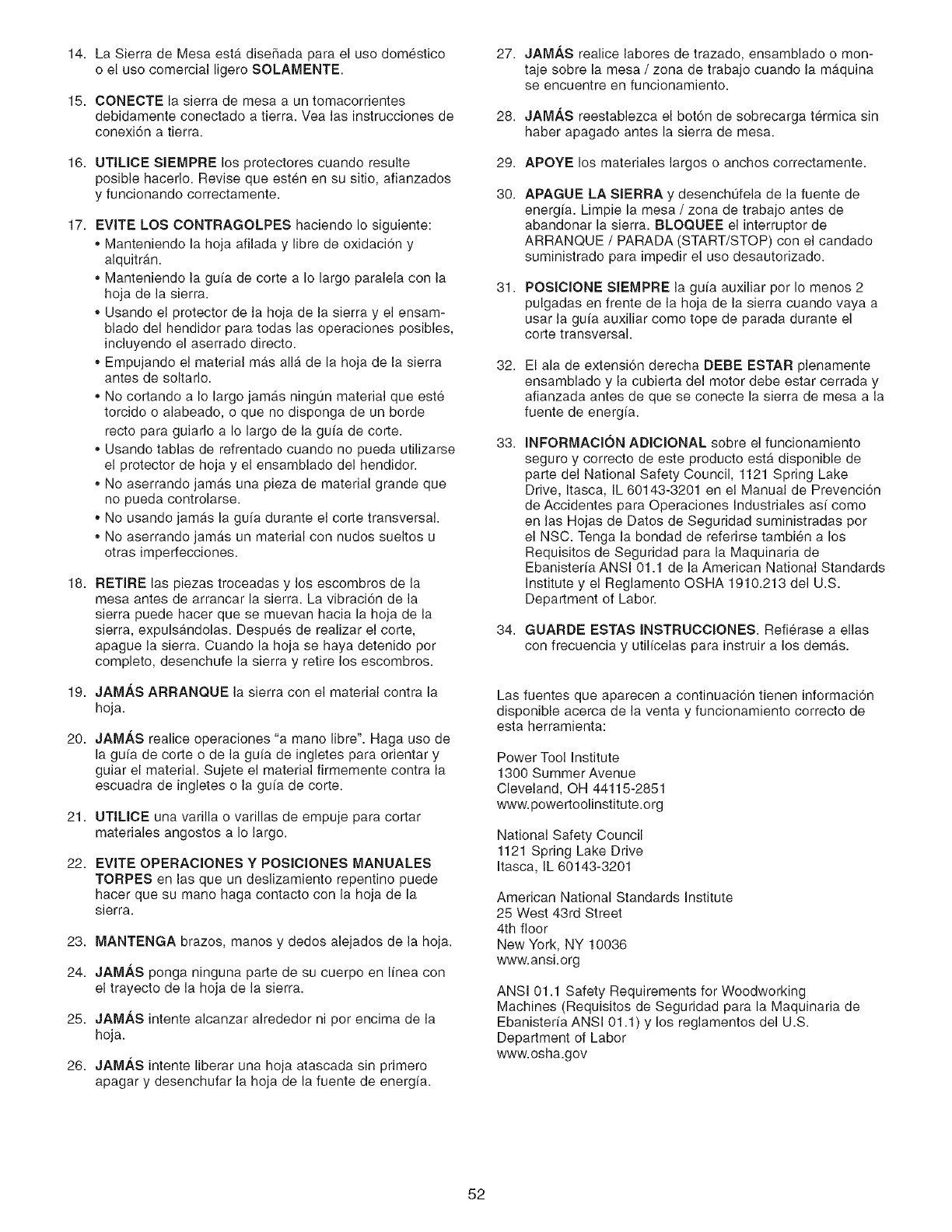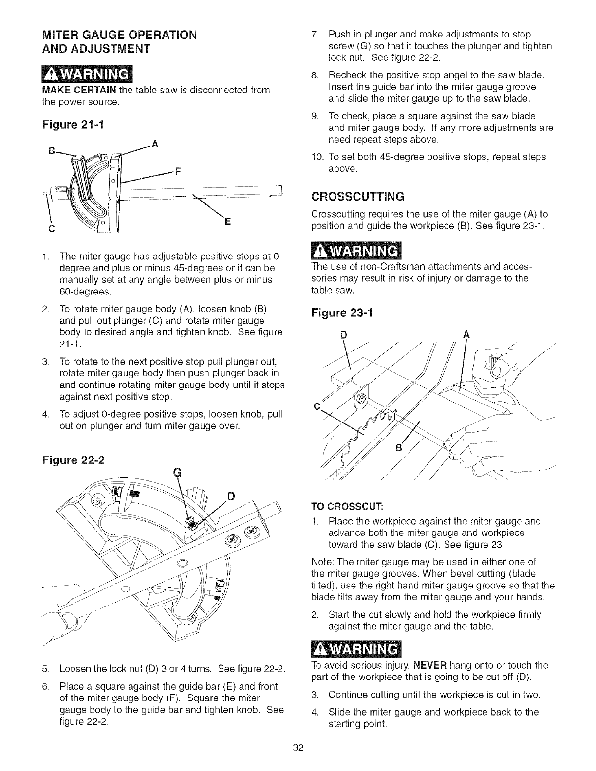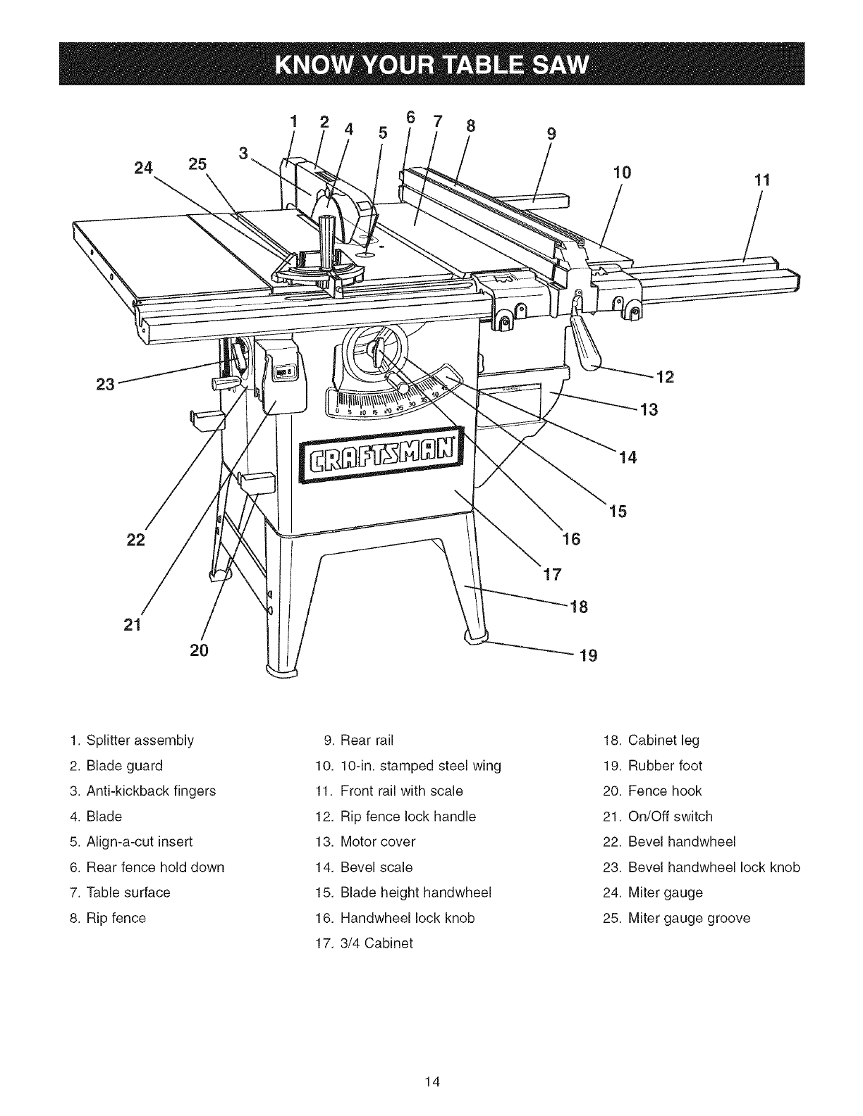 Craftsman 152221040 User Manual TABLE SAW Manuals And Guides L0607447