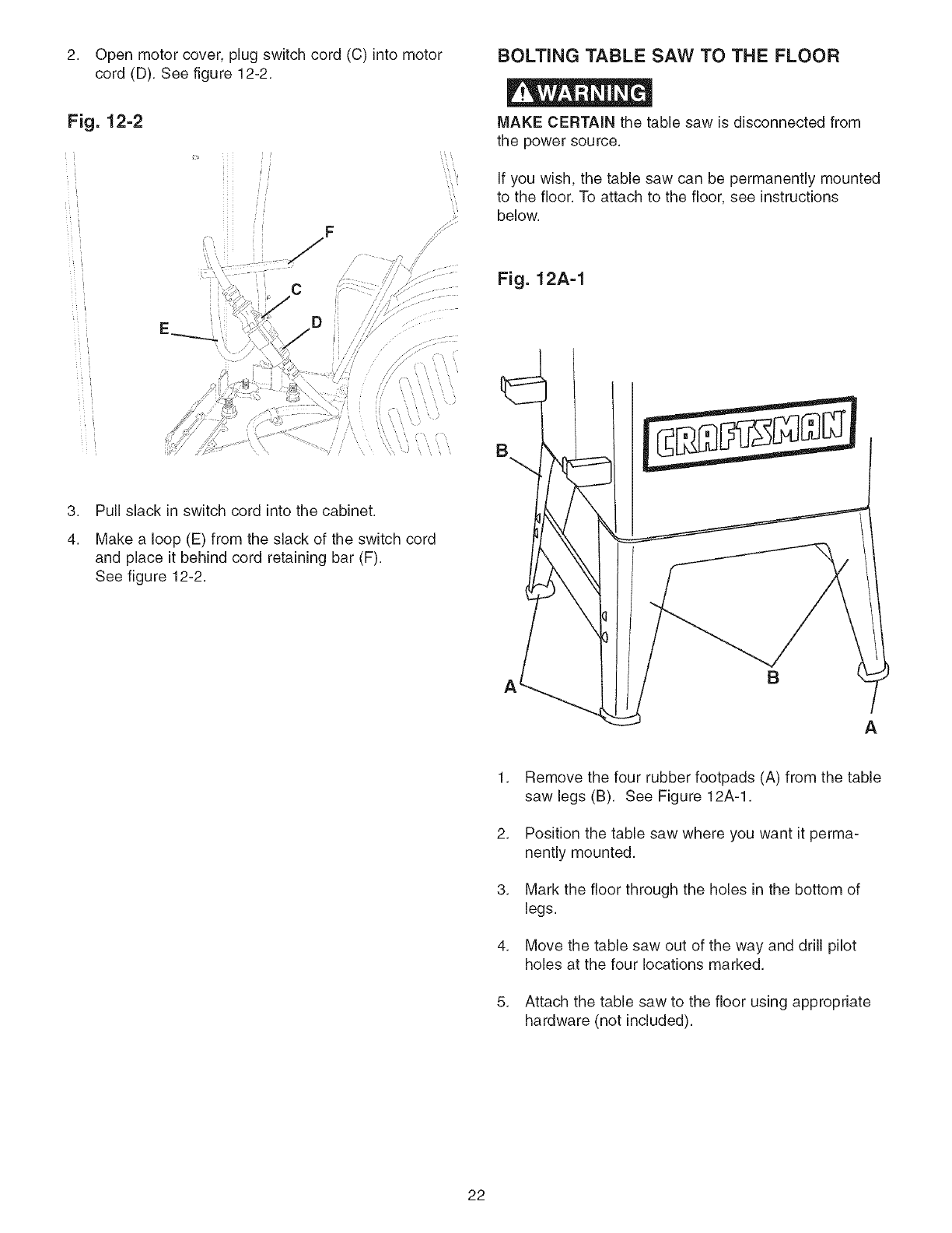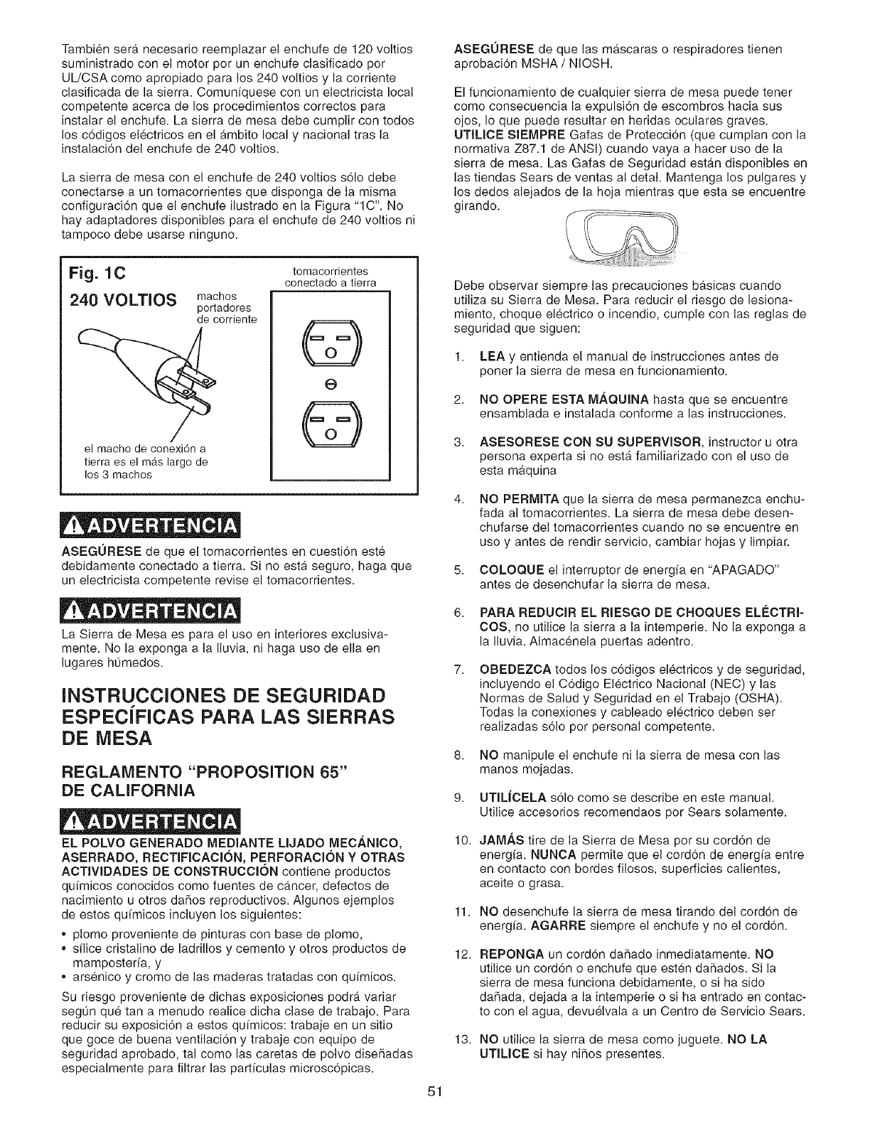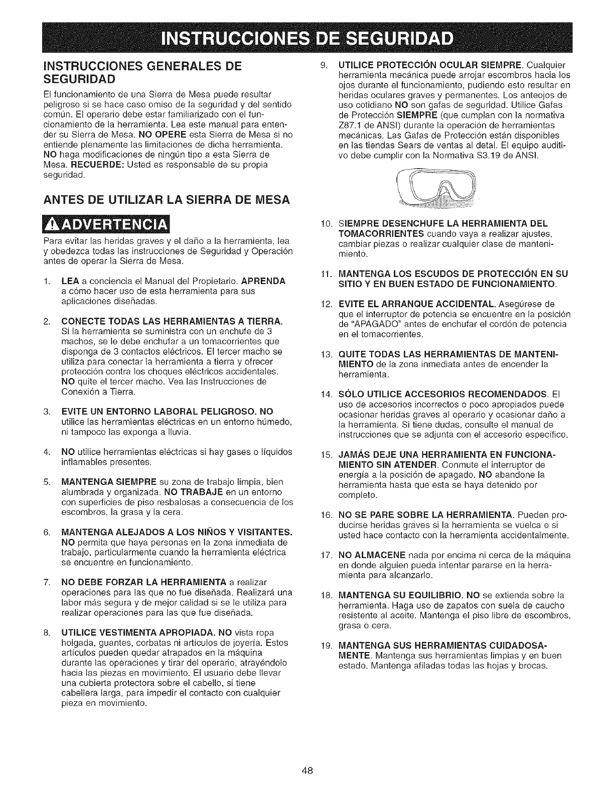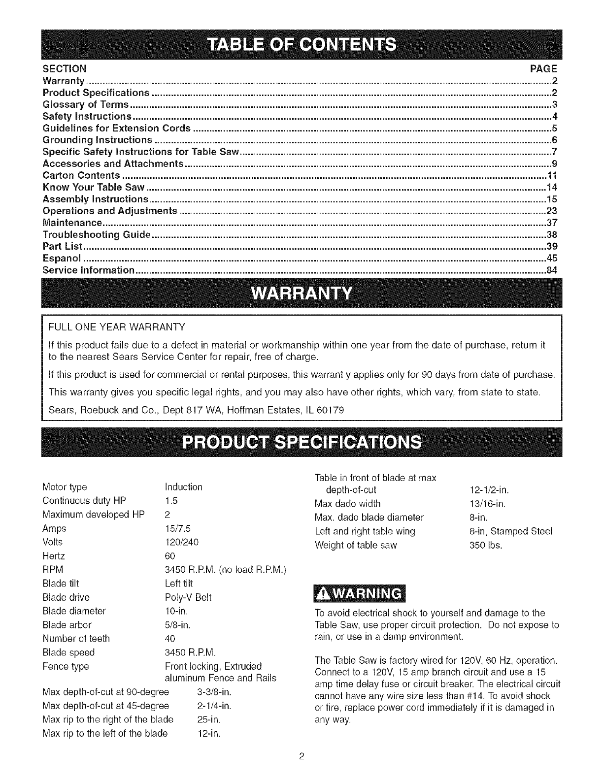Craftsman 152221040 User Manual TABLE SAW Manuals And Guides L0607447