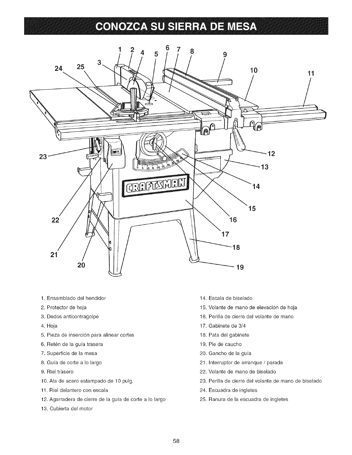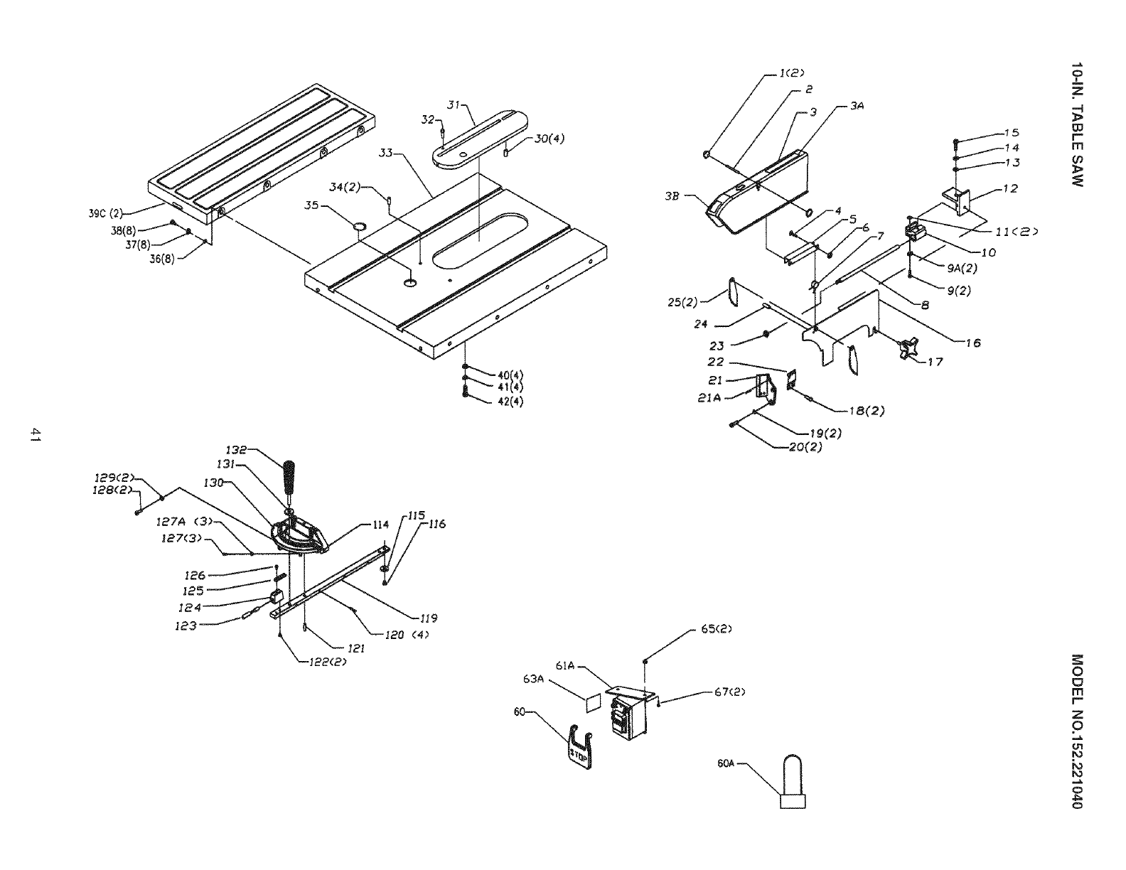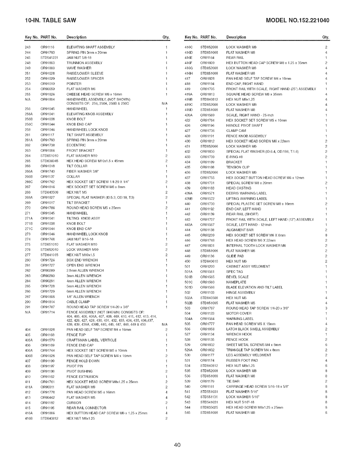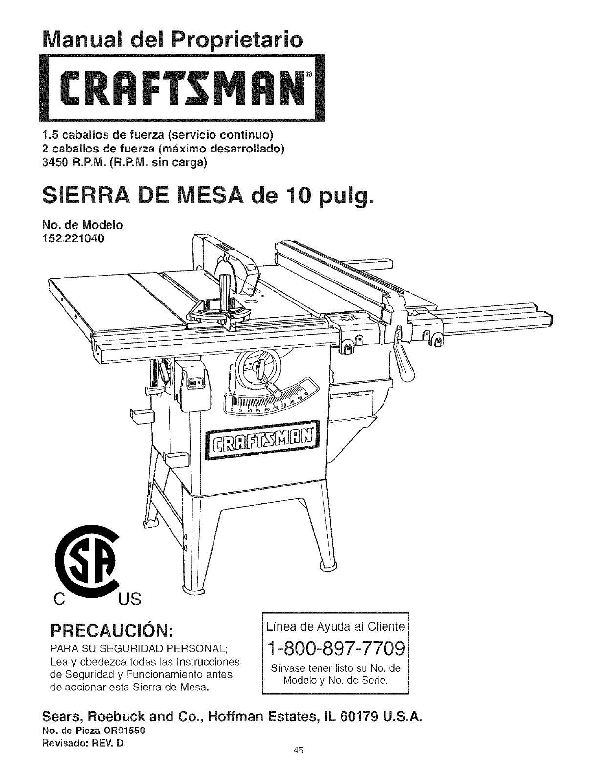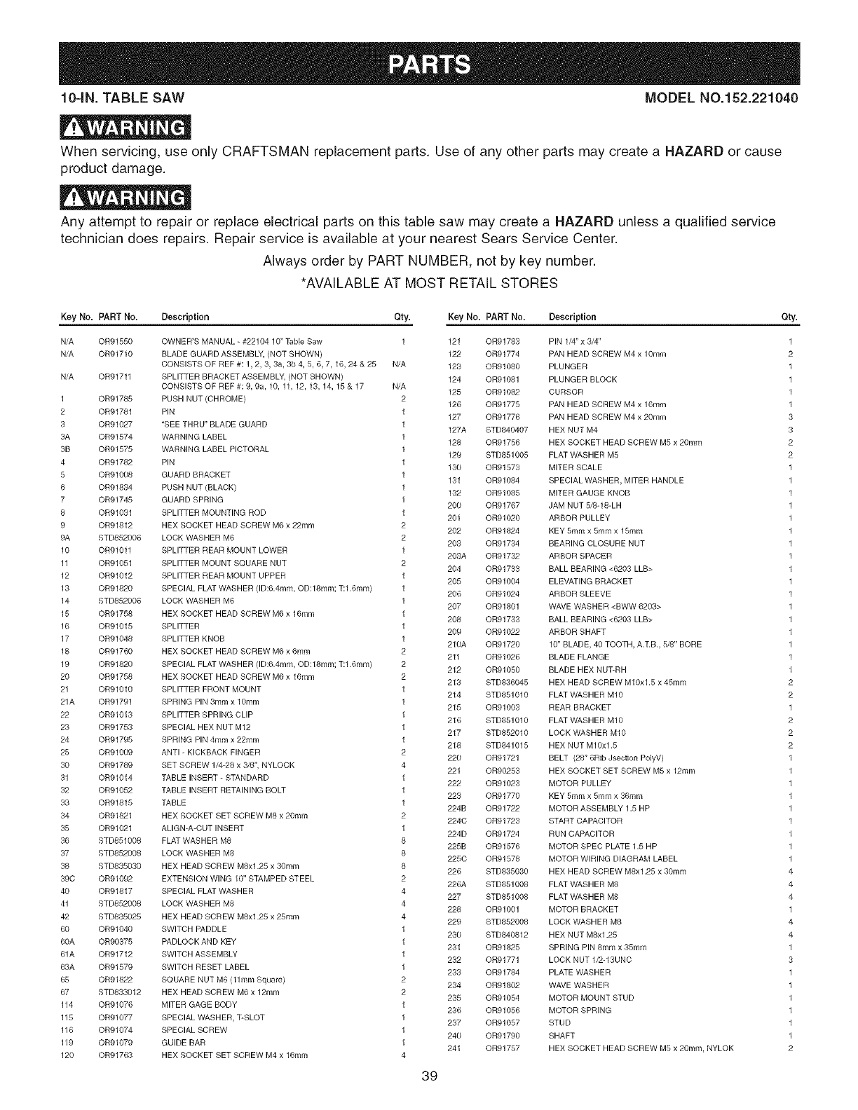 User Manual: Craftsman 152221040 152221040 CRAFTSMAN TABLE SAW - Manuals and Guides View the owners manual for your CRAFTSMAN TABLE SAW #152221040. Home:Tool Parts:Craftsman Parts:Craftsman TABLE SAW Manual