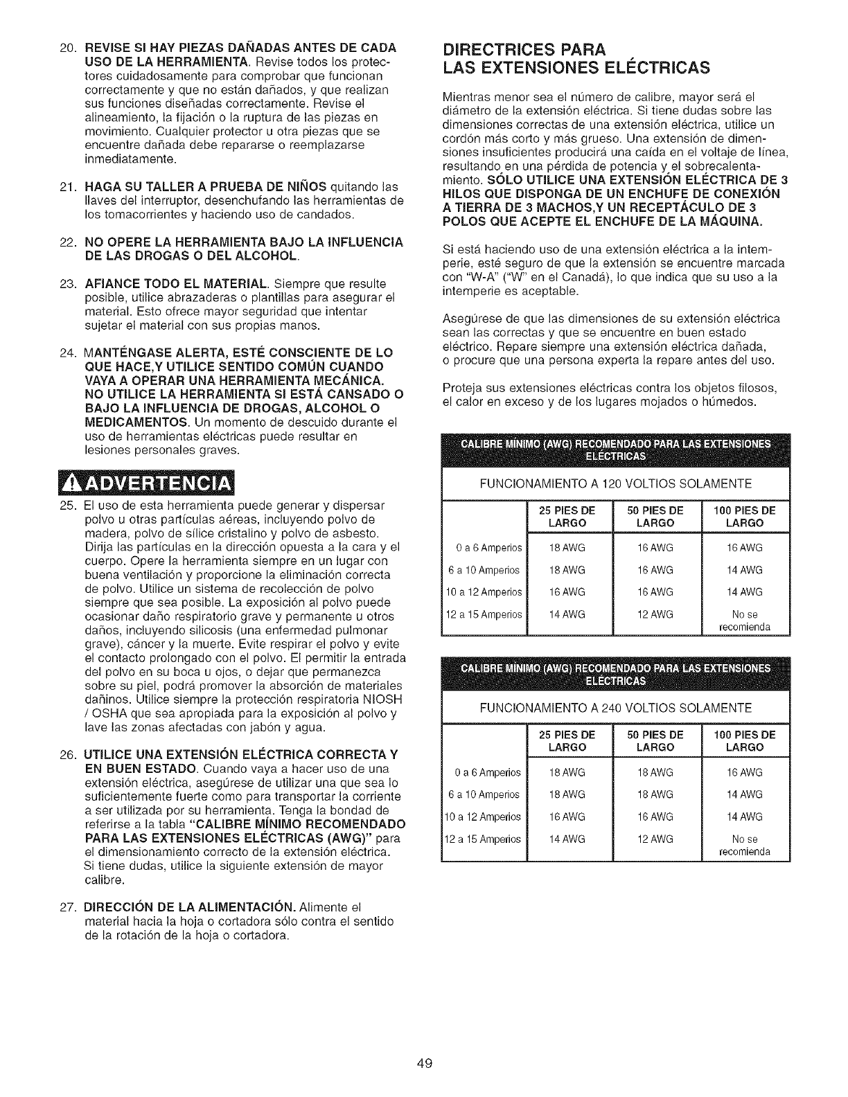 extensi6n, enchufe la sierra directamente al tomacorrientes.