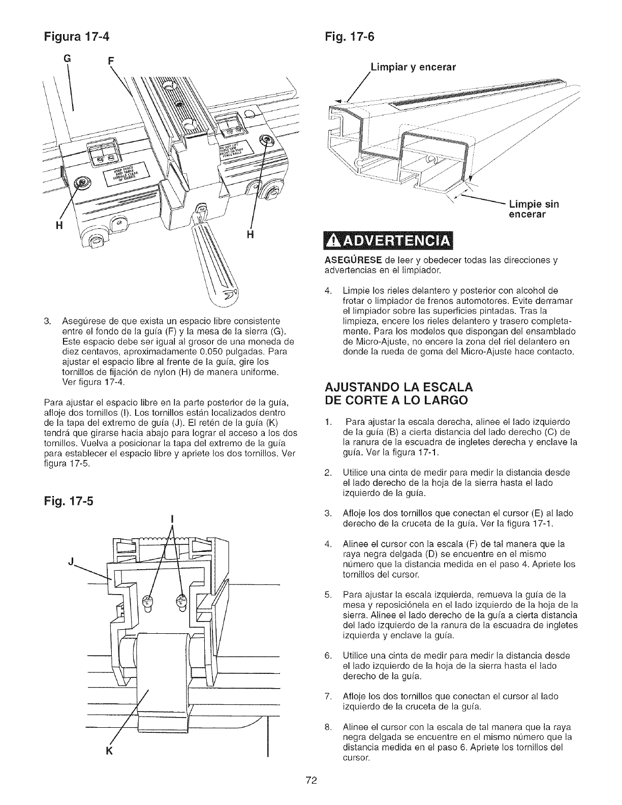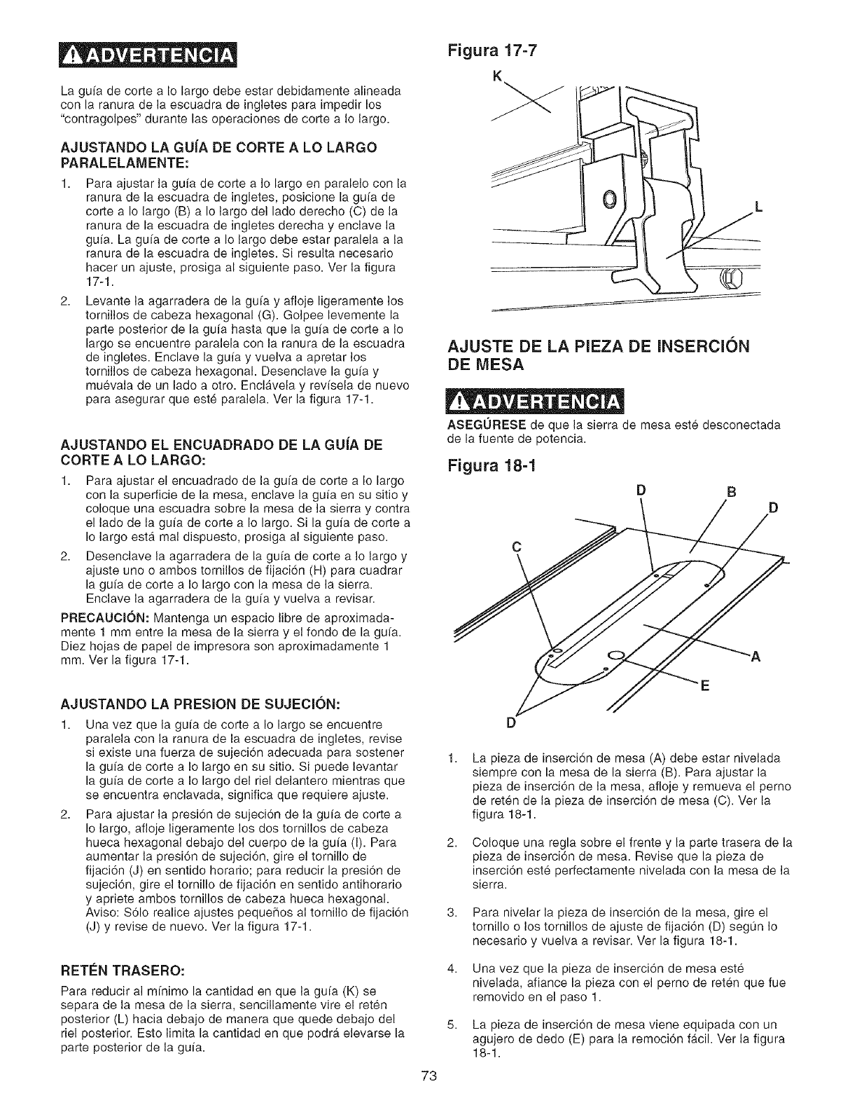 La guu'a de corte aIo 1. Ver "Alinearniento de Guia" en Operaciones y Ajustes.