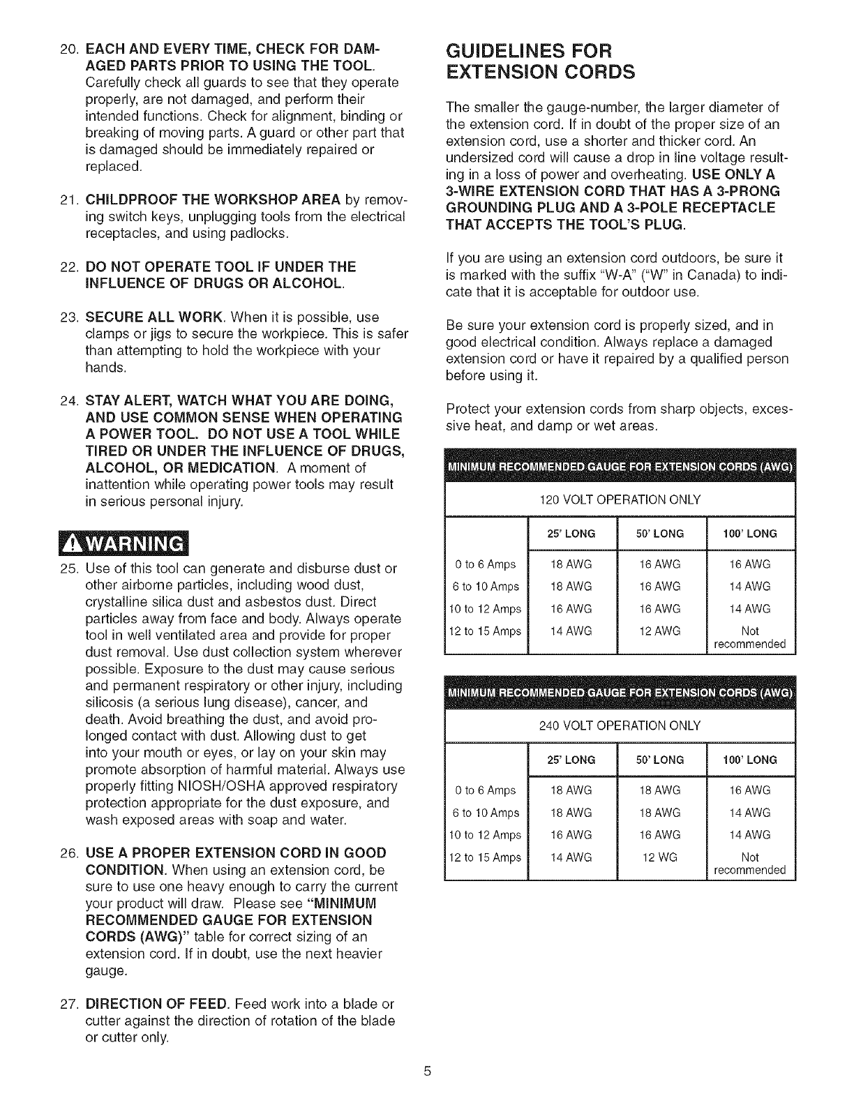 Guidelines for Extension Cords ................................................................................................................................... 5