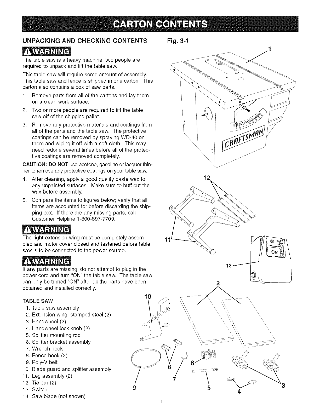 CRAFTSMAN Saw Table Manual L0607447 CRAFTSMAN Saw Table Owner's Manual, CRAFTSMAN Saw Table installation guides