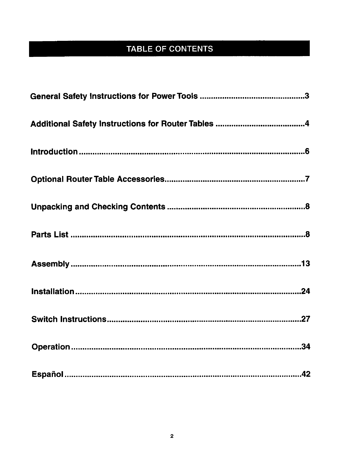Optional Router Table Accessories ............................................................... 7