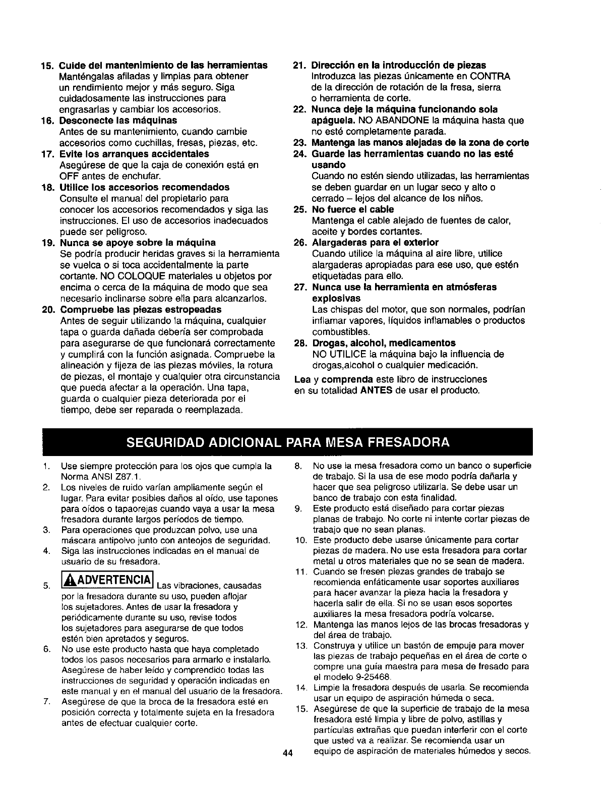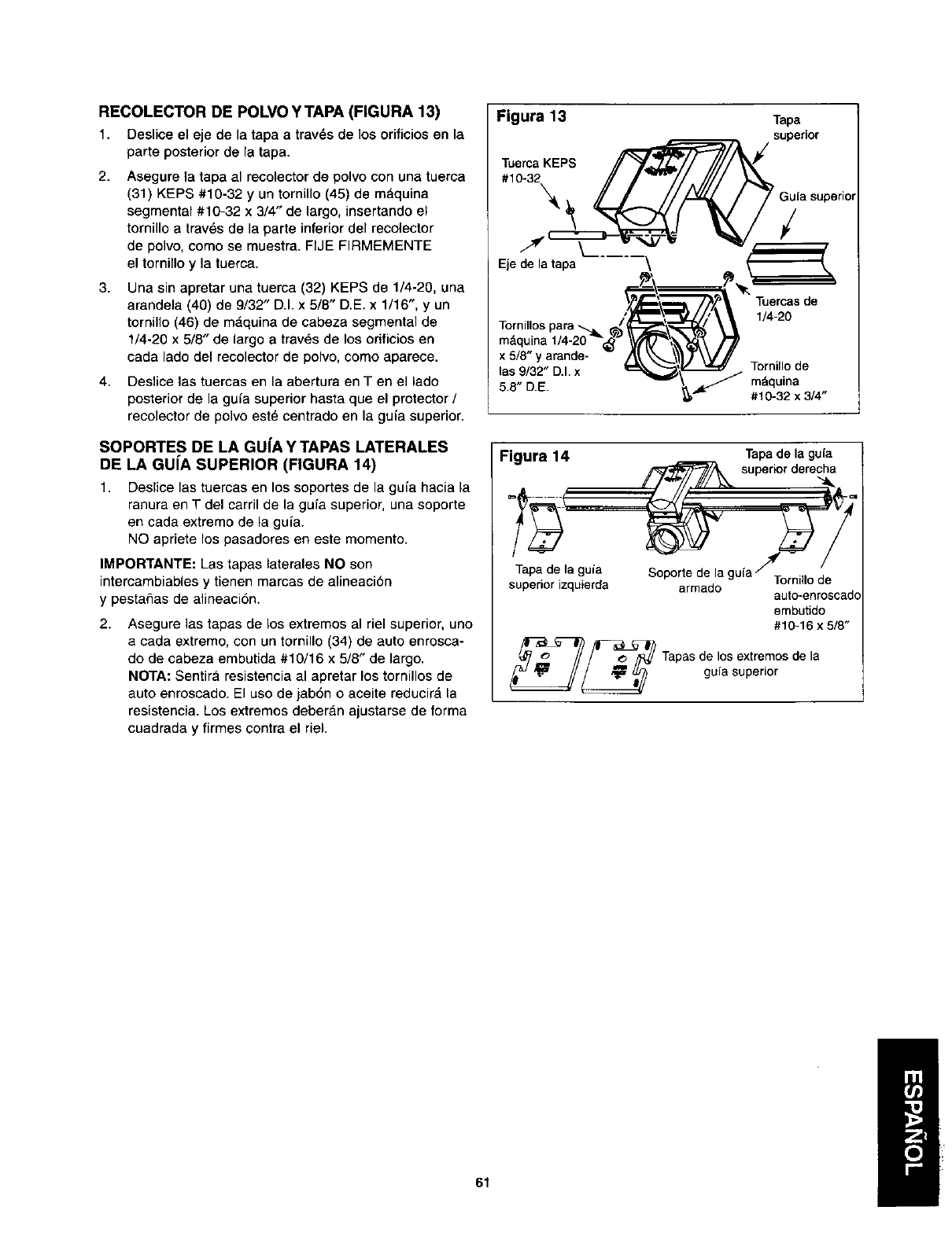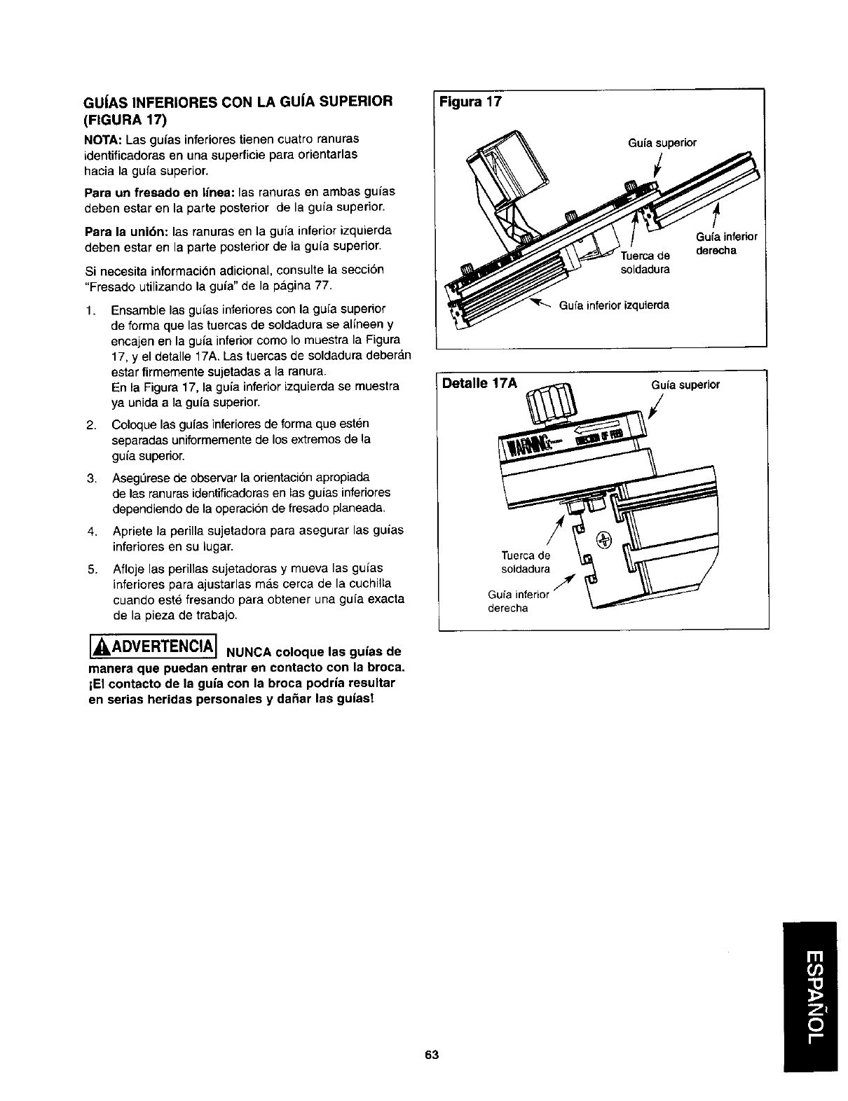 SIEMPRE VERIFIQUE EL AJUSTE DE ESTAS GU{AS DE