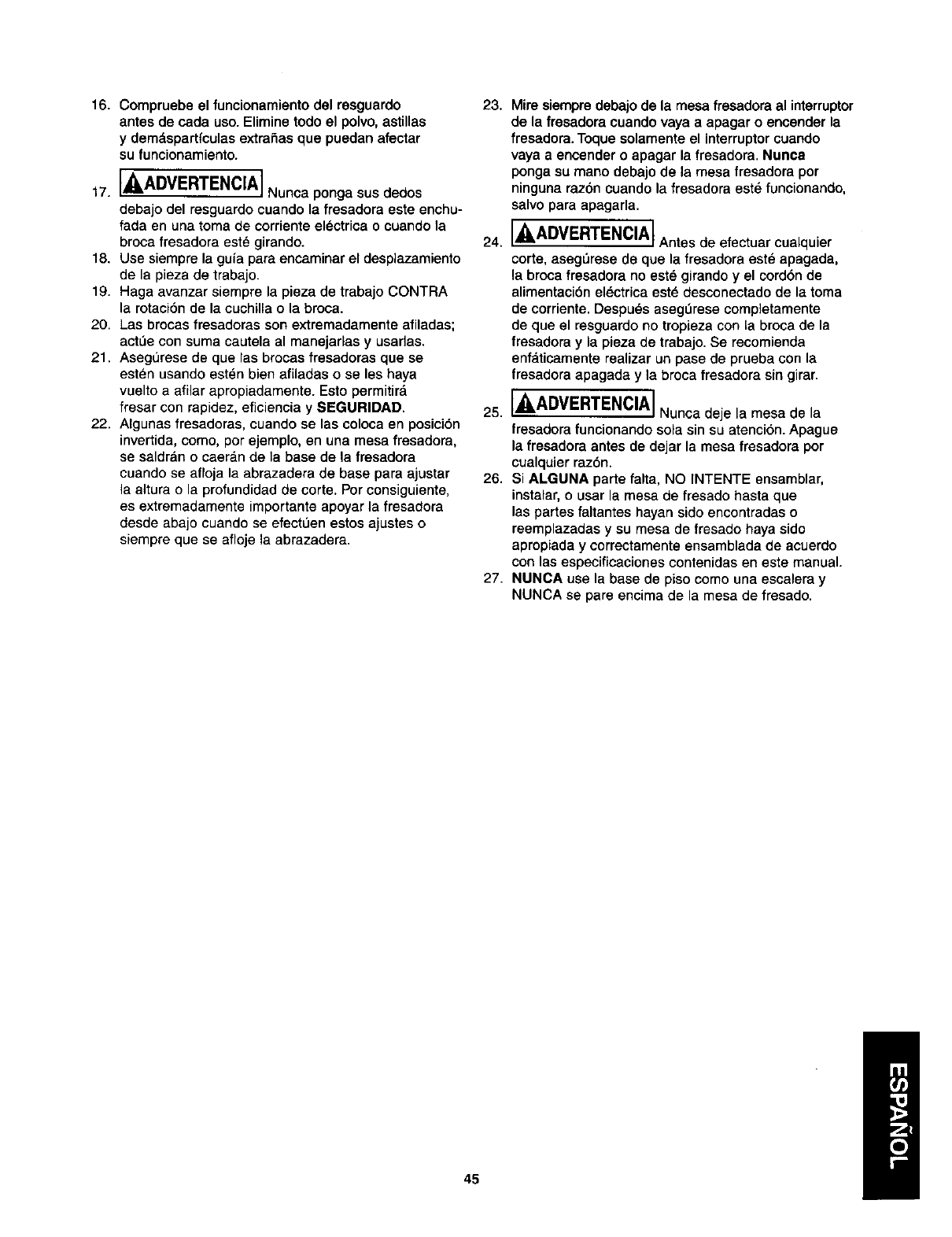 10. Con la pieza de trabajo lejos de la broca,