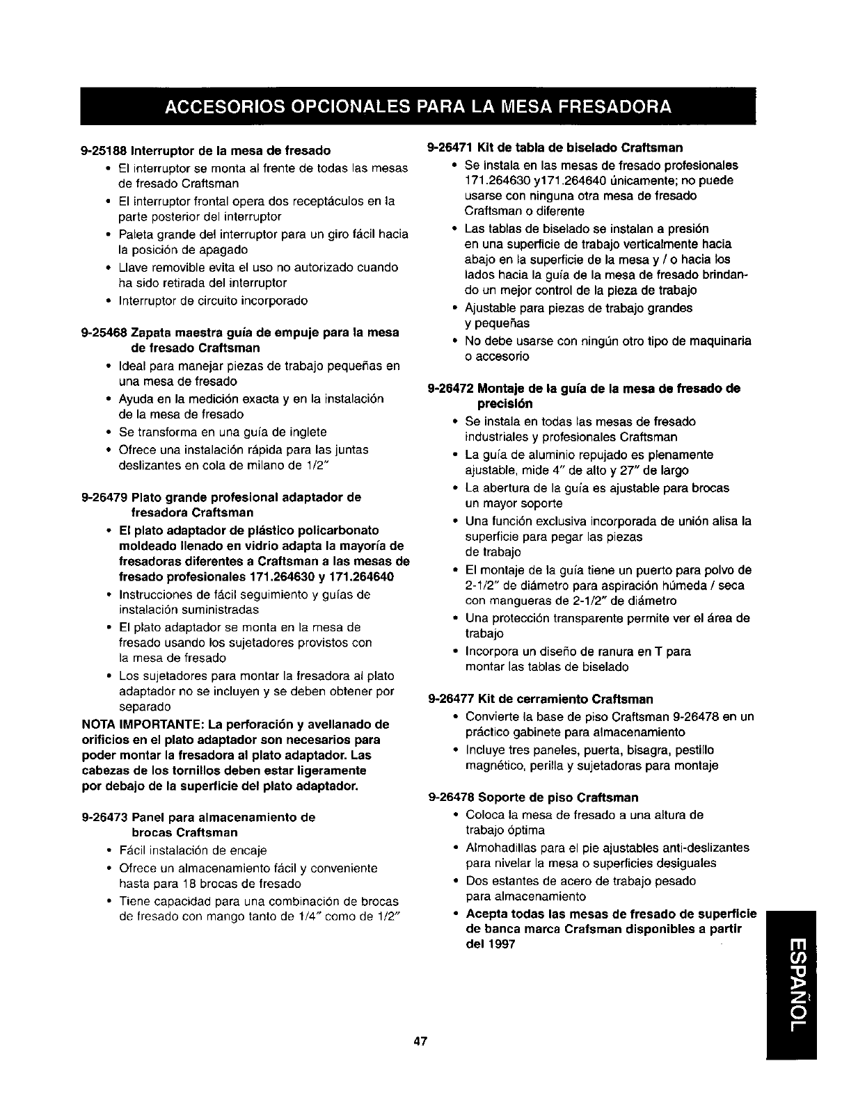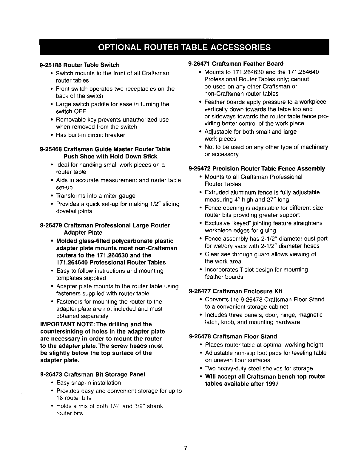 CRAFTSMAN Router Accessory Manual L0405222 CRAFTSMAN Router Accessory Owner's Manual, CRAFTSMAN Router Accessory installation guides