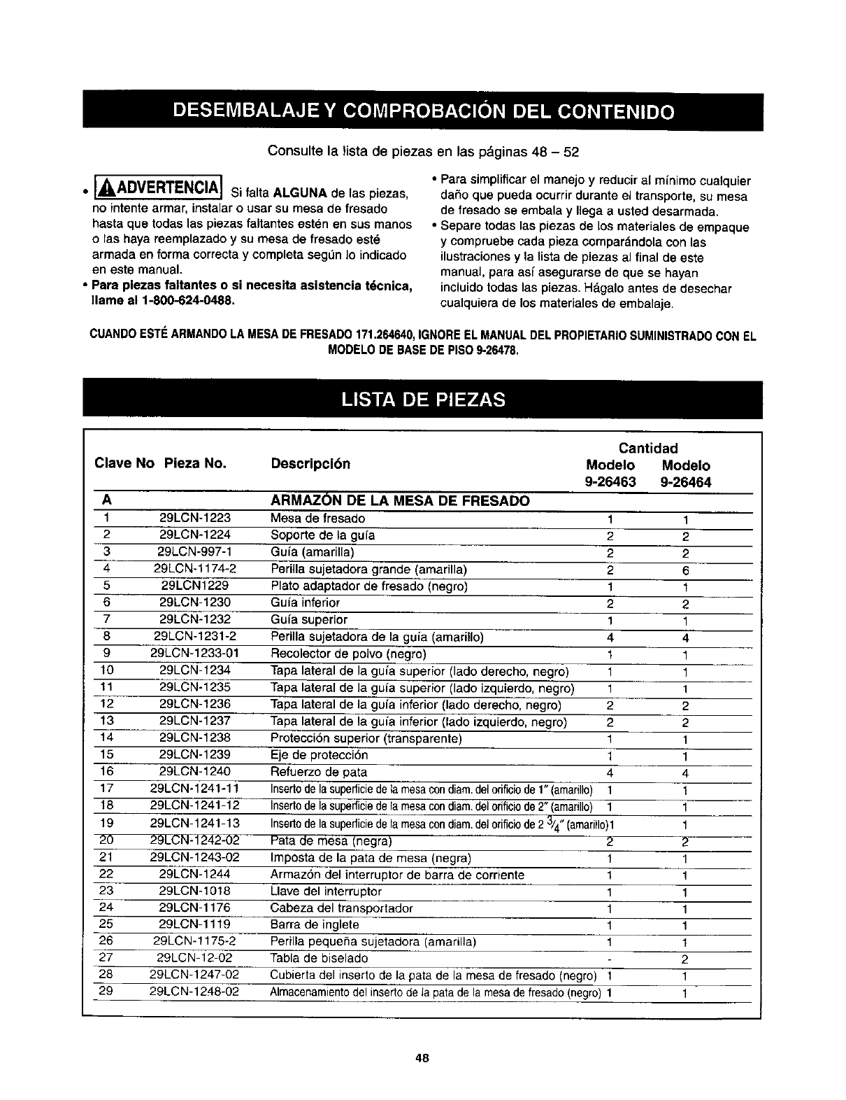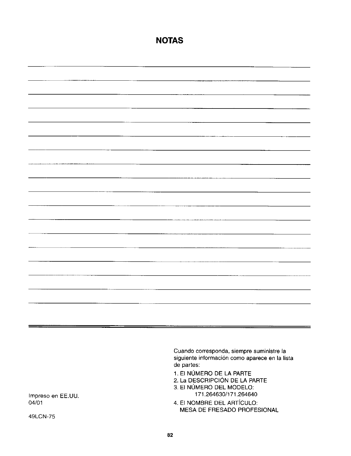 171.264630 and 171.264640 04101 Printed in U.S.A. Hecho en los Estados Unidos